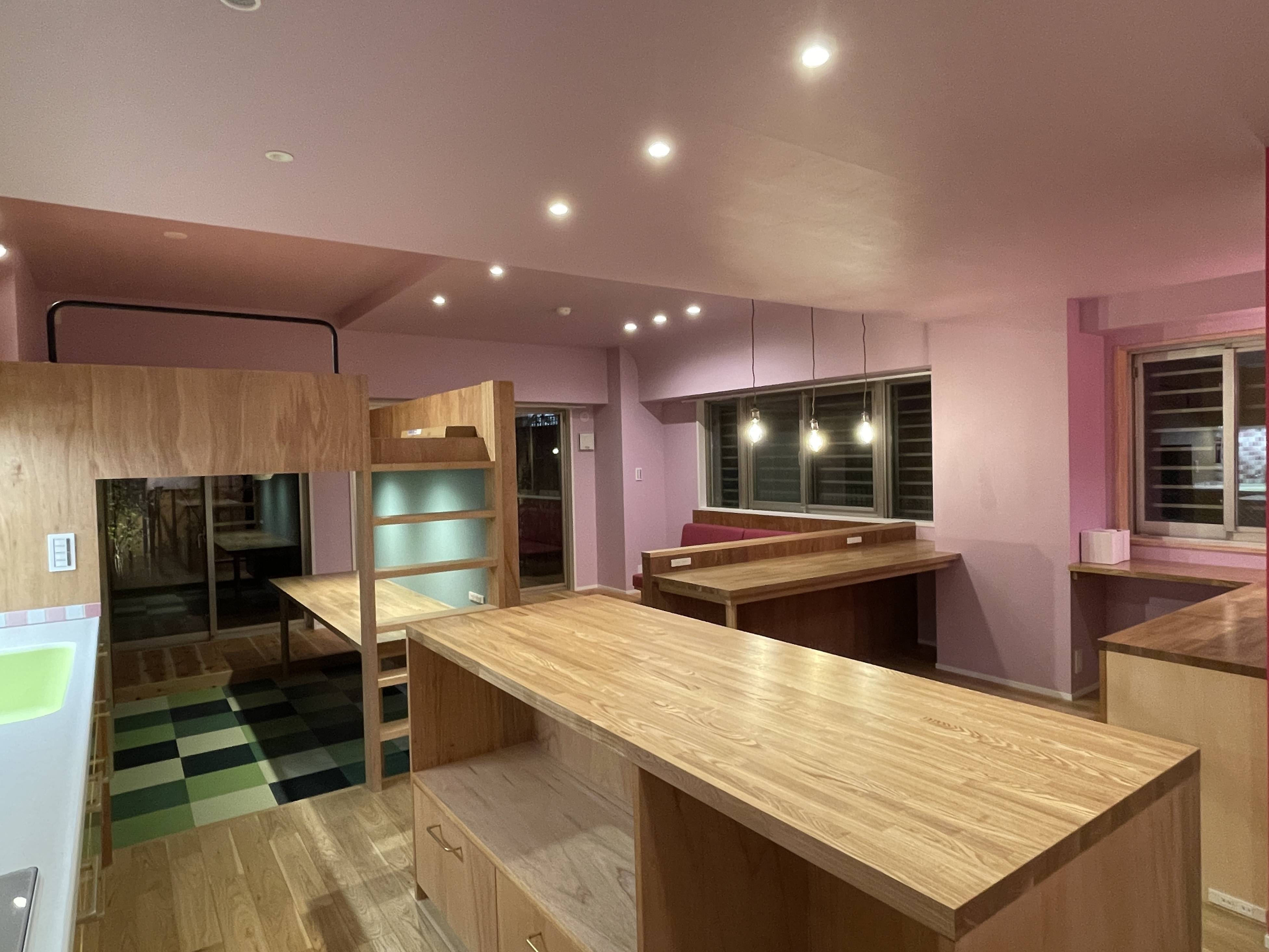 リビング、ダイニング、キッチン、ワークルーム、ロフト、洗面室、寝室、アウトドアリビングのそれぞれの場所がおおらかに接続しながらも適度に空間の分節がなされており、集合住宅の1住戸のなかでも多様な居方と場所が用意されています。