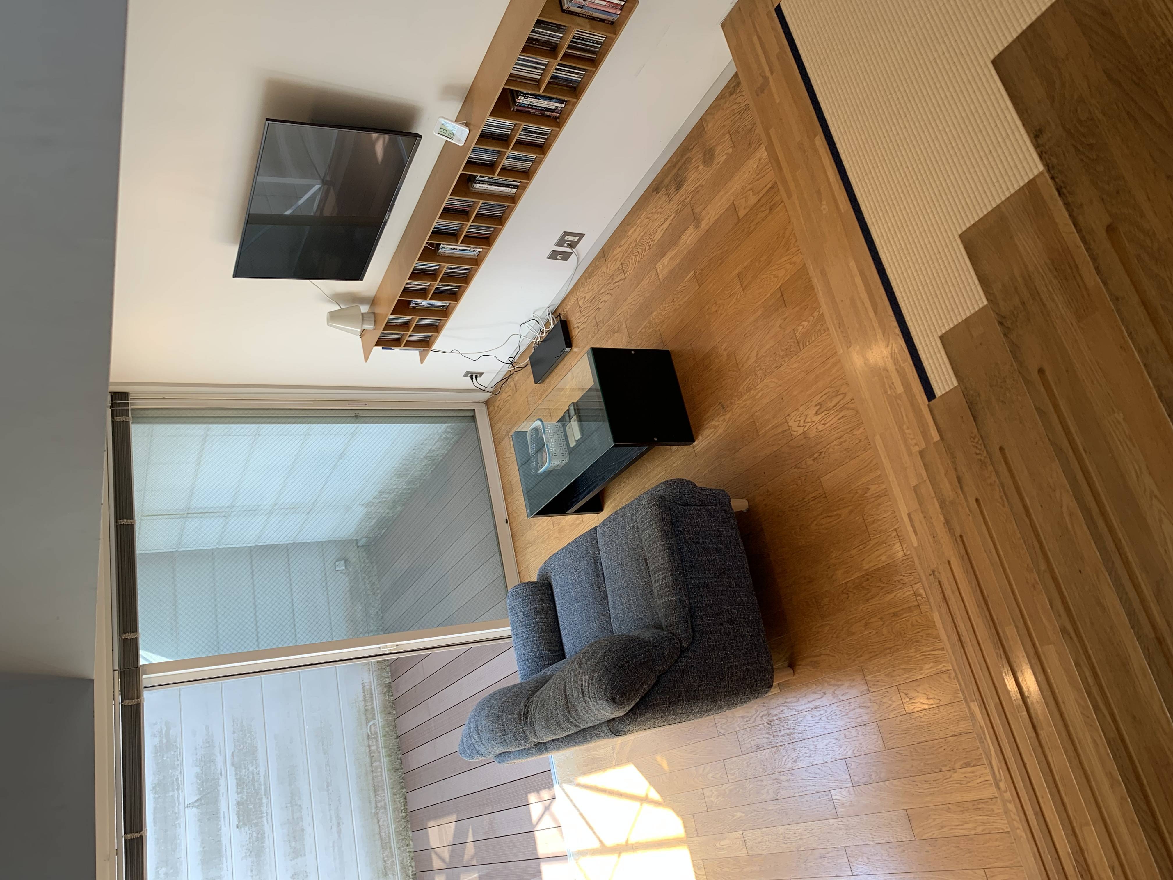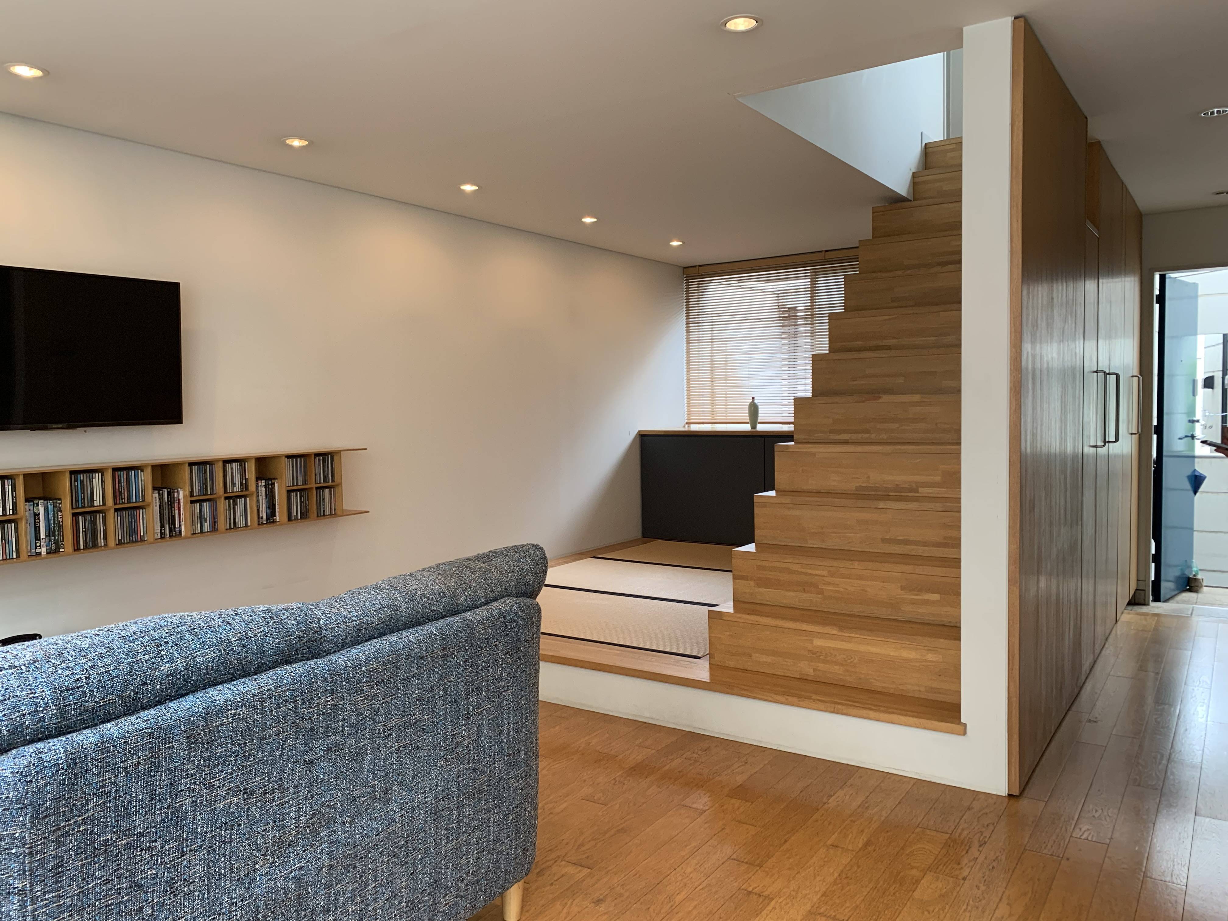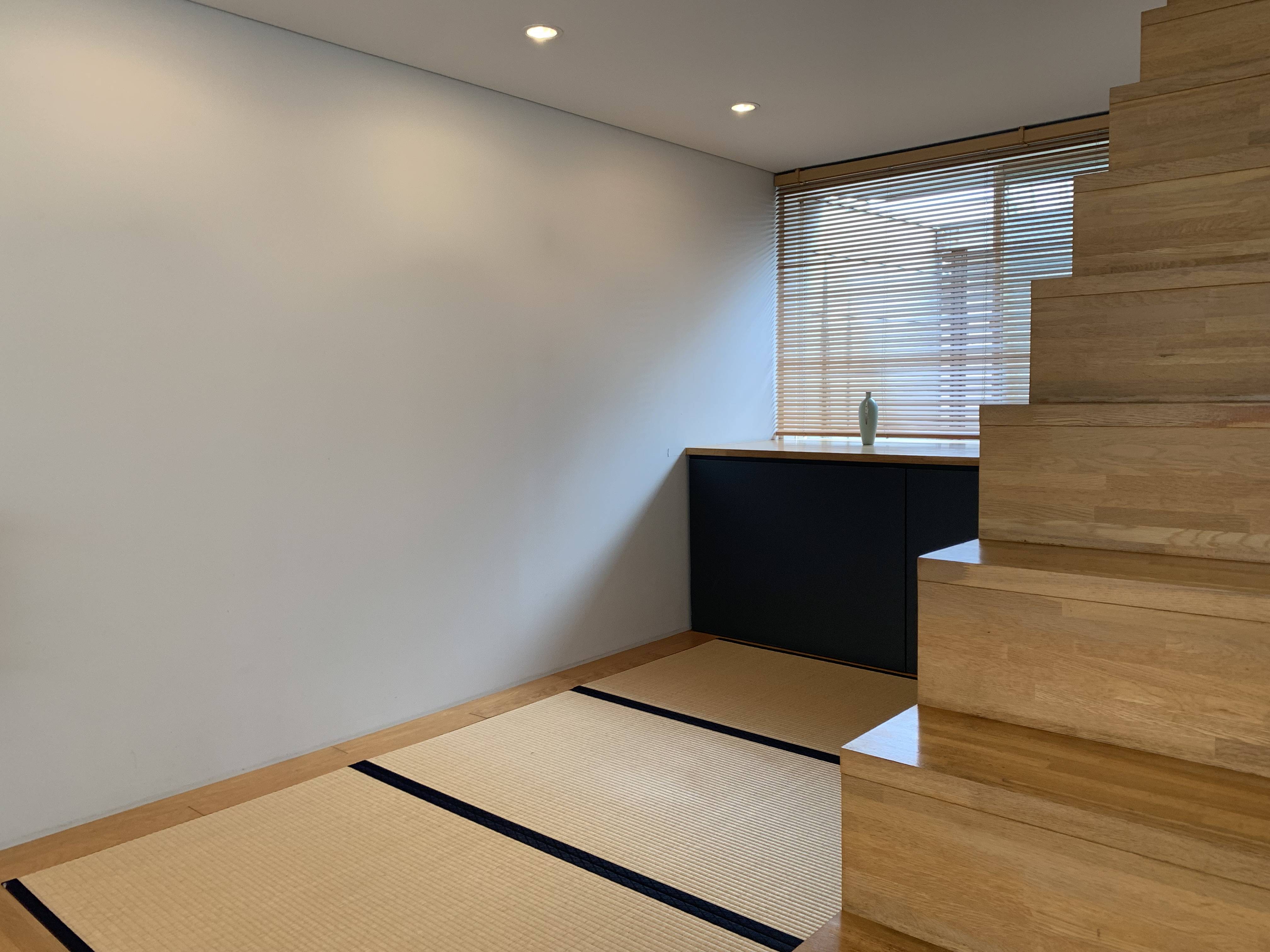 完全分離の二世帯は、中庭の光と風を共有しながら、お互い緩やかに気配を感じながら繋がっている