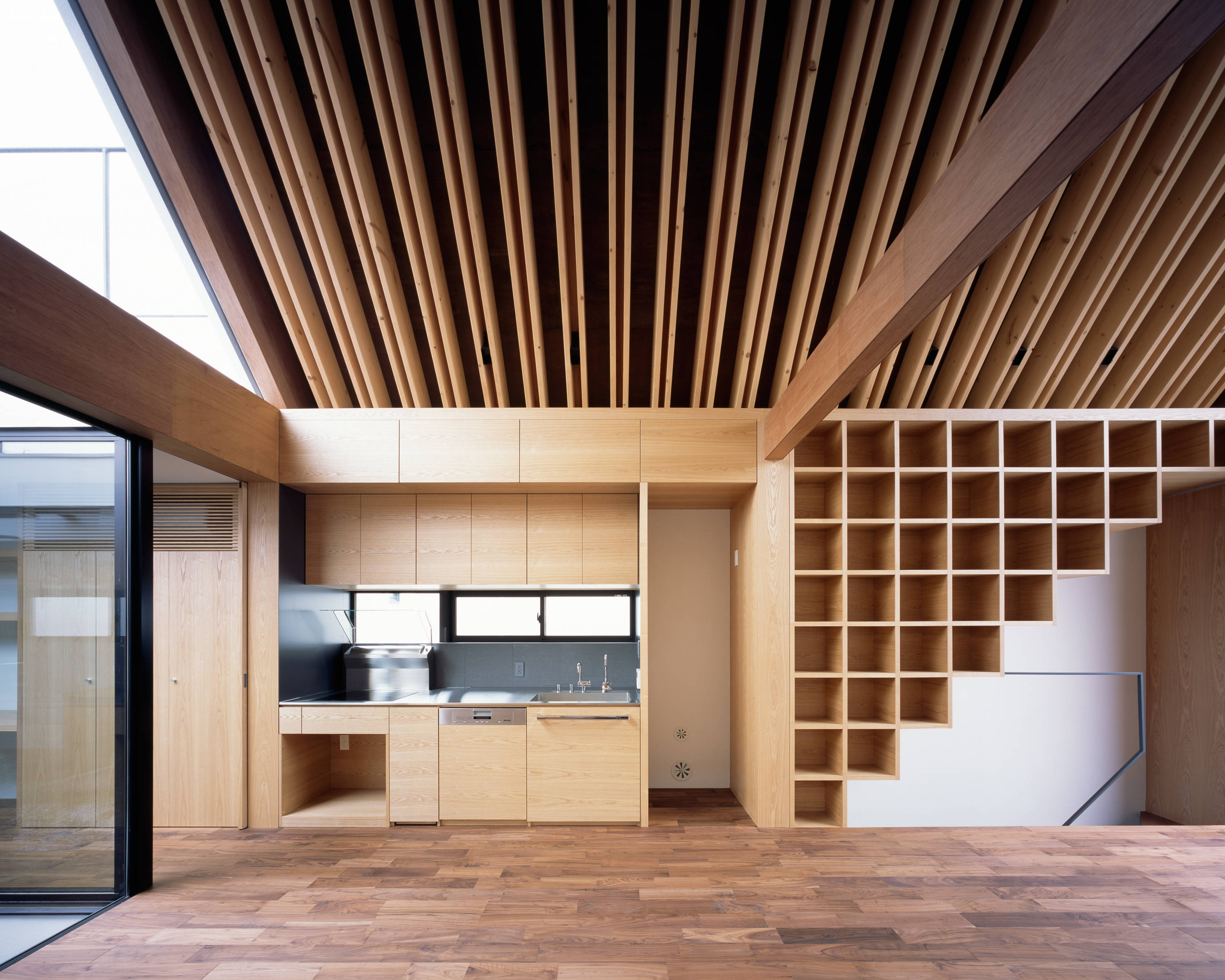 所在地:東京都杉並区 竣工:2015年5月 構造:木造 規模:地上2階建 用途:専用住宅 構造設計:正木構造研究所 正木健太 設備設計:松本尚樹 照明設計:シリウスライティングオフィス 戸恒浩人 施工: ヤマゼン建設 建築写真:西川公朗 URL http://www.kurosakisatoshi.com/architecture/2015/ARK/index.html