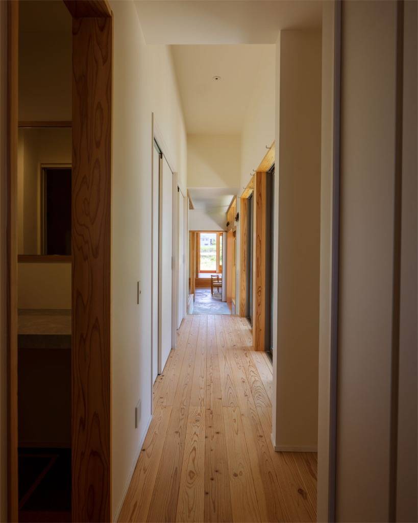 奥行きの長い敷地形状をトレースするように、東西に抜けをつくり、
