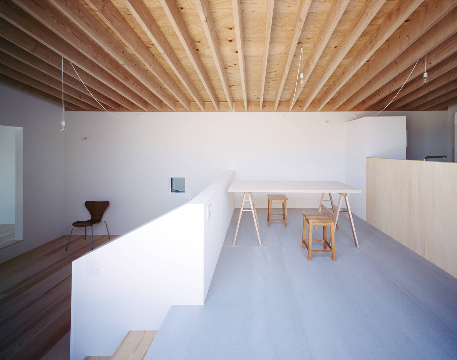 家具や床のレベル差でそれぞれの居場所や広がりをつくり、つかず離れずの距離感で家族の暮らしが展開するリズムのある楽しい住まいです。