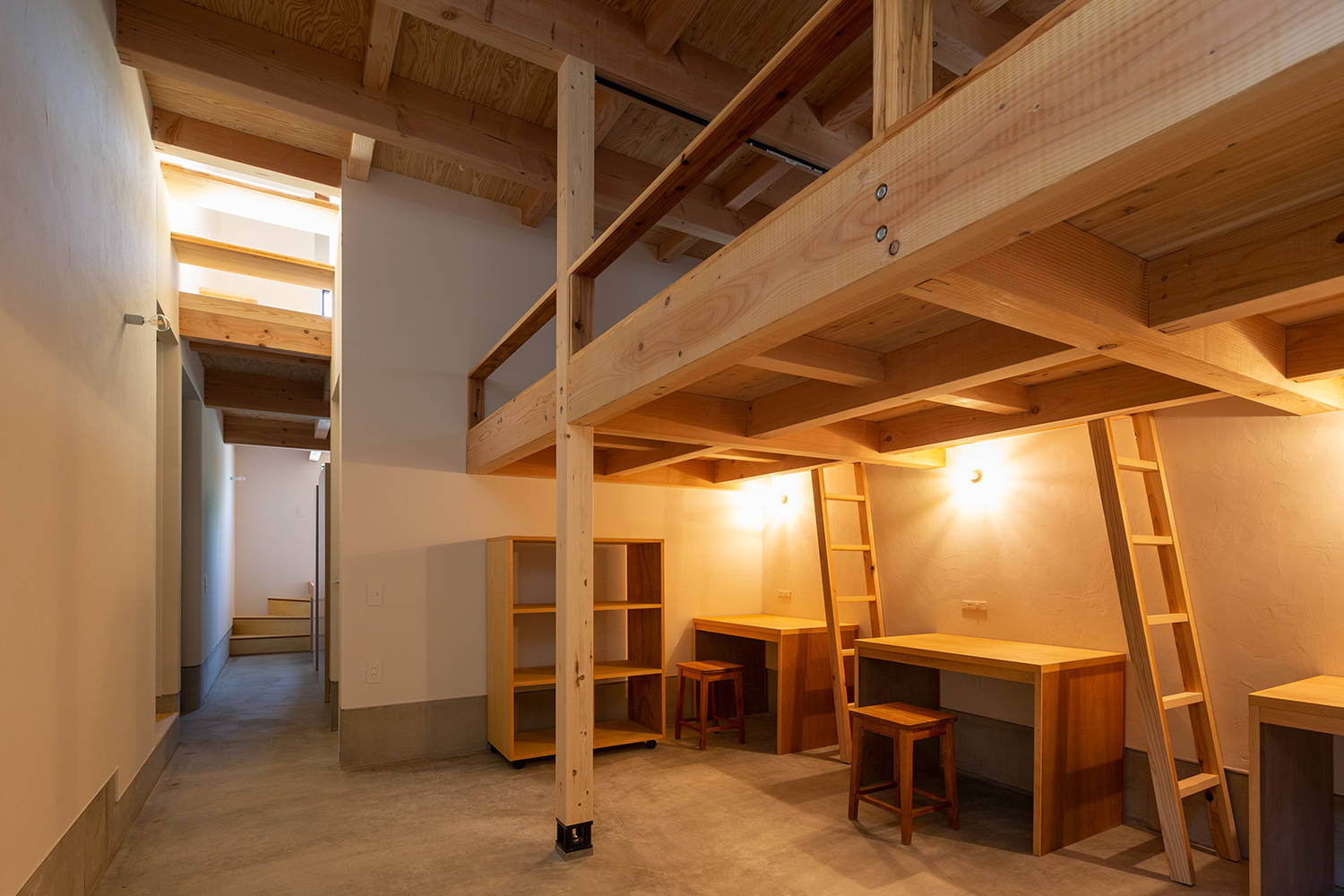 さらに、バスケをする子供達用にロッカー風の収納や2段ベッド風のロフトなど、子供達が楽しめる工夫も所々に取り入れています。
