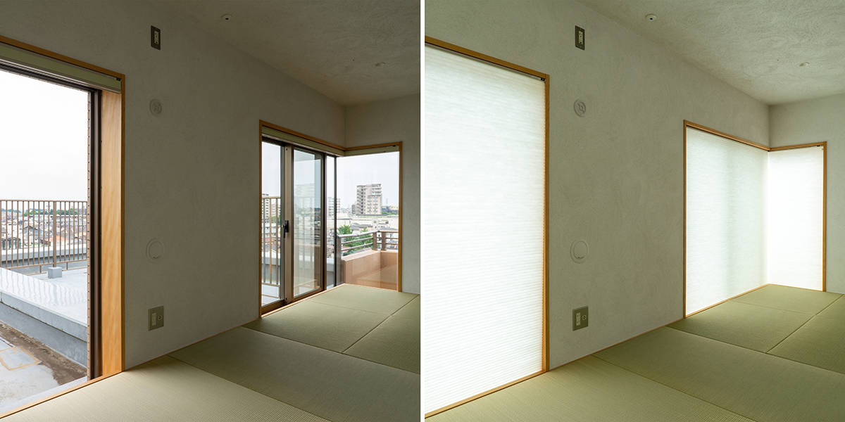 築20 年のマンション一室のフルリノベーションです。子育てがひと段落した建て主夫妻とこれからの住まい方を考えました。 最上階の角部屋にあるこの住宅は、日当たりが良すぎて夏暑く、ドアストッパーが壊れるほどの風が吹くという温熱環境面と、収納量、景色の見えないキッチン、くつろげる場所が少ないリビングなど、計画面に課題がありました。