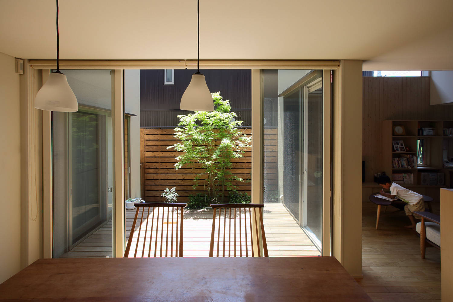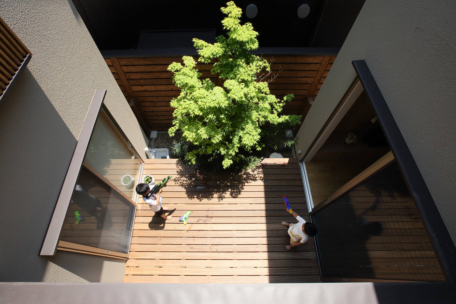 大阪近郊の良好な住宅地に建つ中庭形式の、若い子育て世代のお住まいです。
