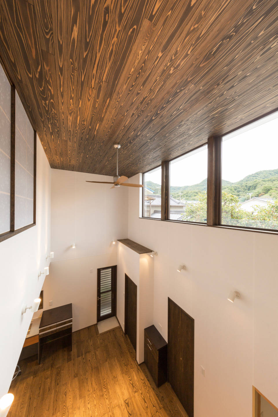 よって、1階の窓からリビング・ダイニングへの採光を取ることが出来ないことから、吹き抜け経由での採光としています。