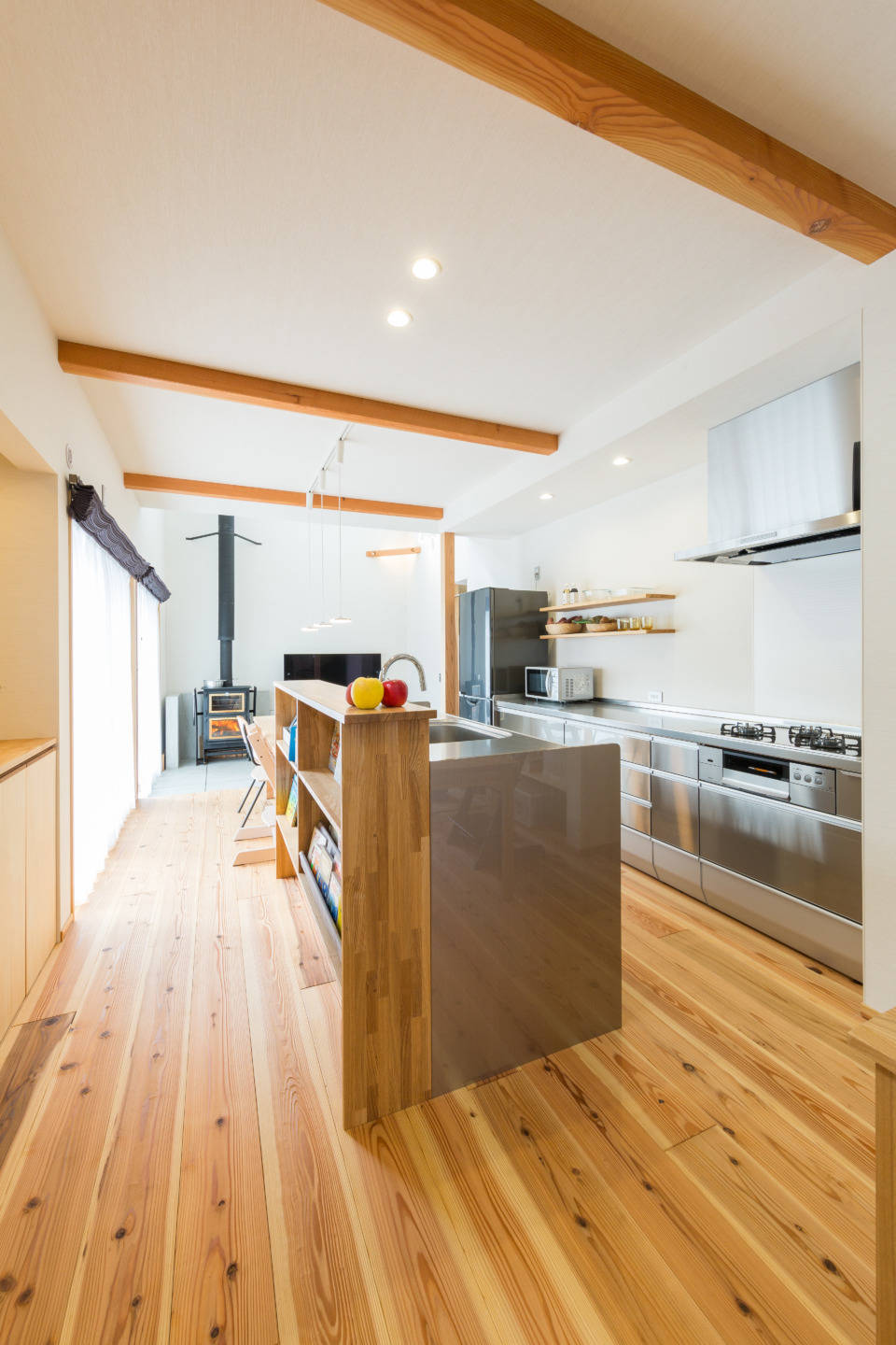 お客様からの要望は、土間と薪ストーブと機能的な収納。