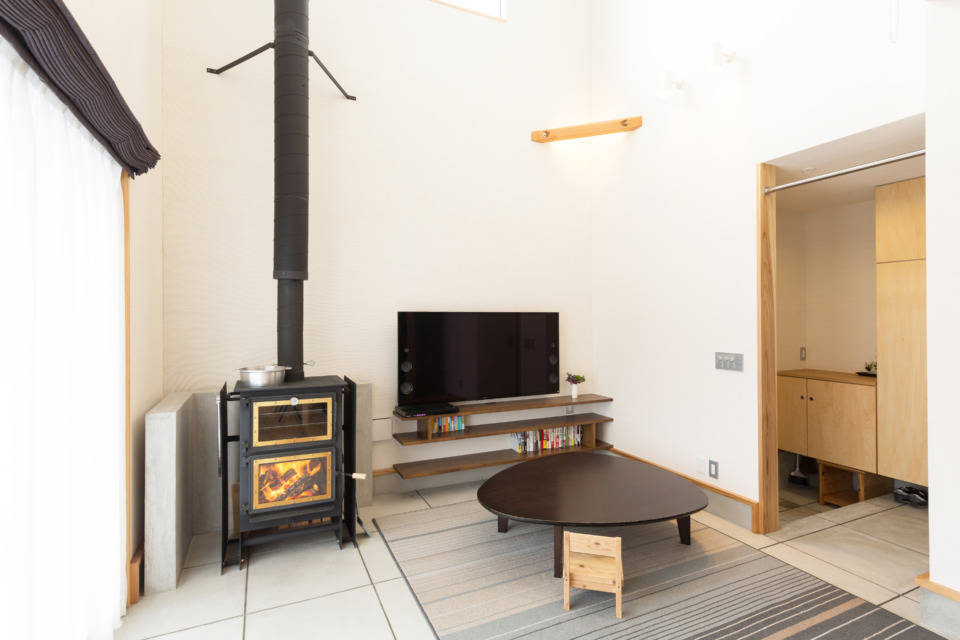 薪ストーブの炎を見ていると、時間の経つのも忘れてしまう、ゆったりとした家。