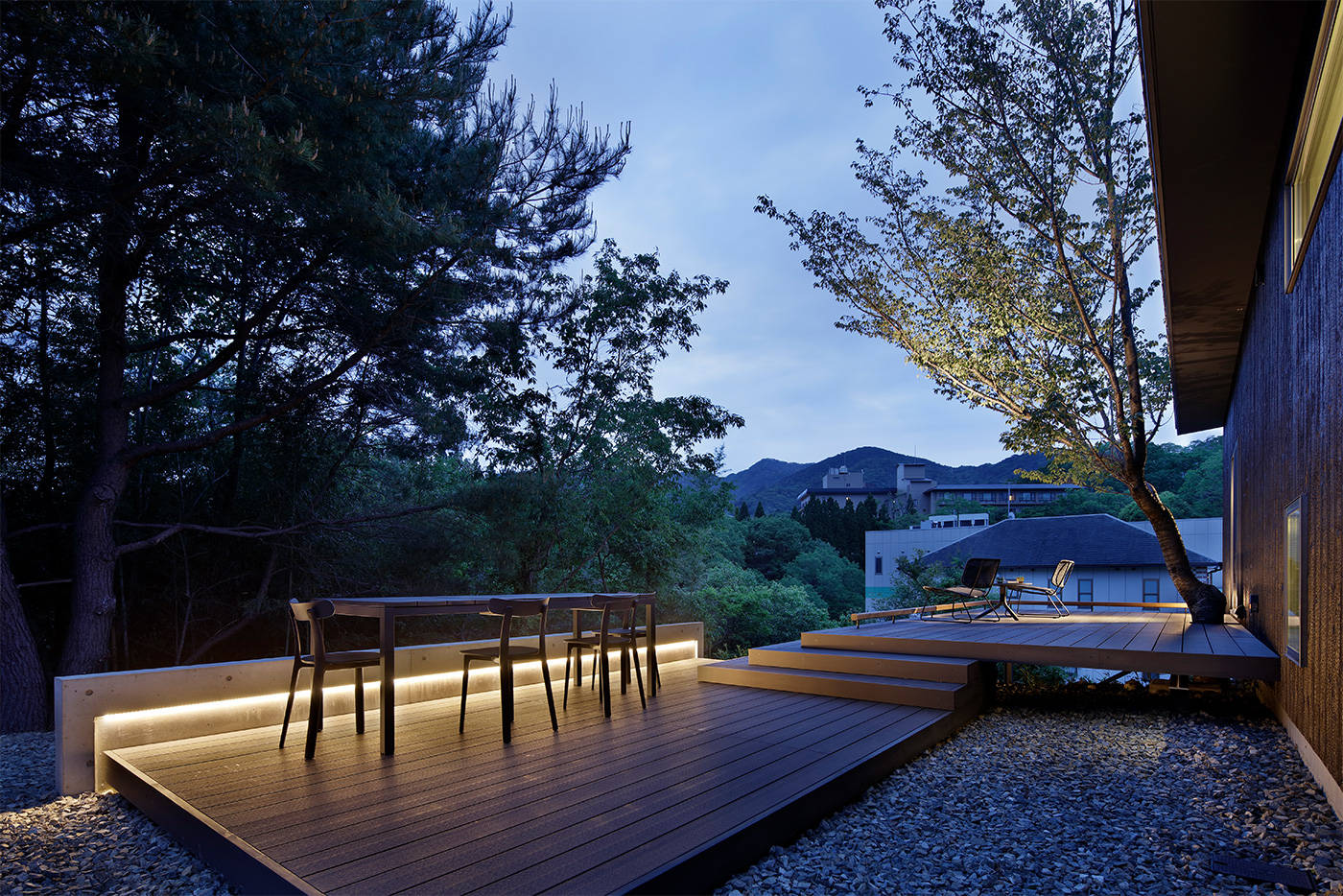 個室や水回りは16m×10mの2辺に付随するように配置していて、主寝室からは裏庭に設けたデッキに出ることができ、遠景と共に食事やお茶が楽しめるようになっています。3つの中庭を通じて、植物や天候が四季を色濃く伝えてくれ、周囲に住むたくさんの鳥は、毎日その多様な鳴き声で楽しませてくれます。刻々と変化する自然に満たされた、美しい空間をつくりあげることが出来ました。