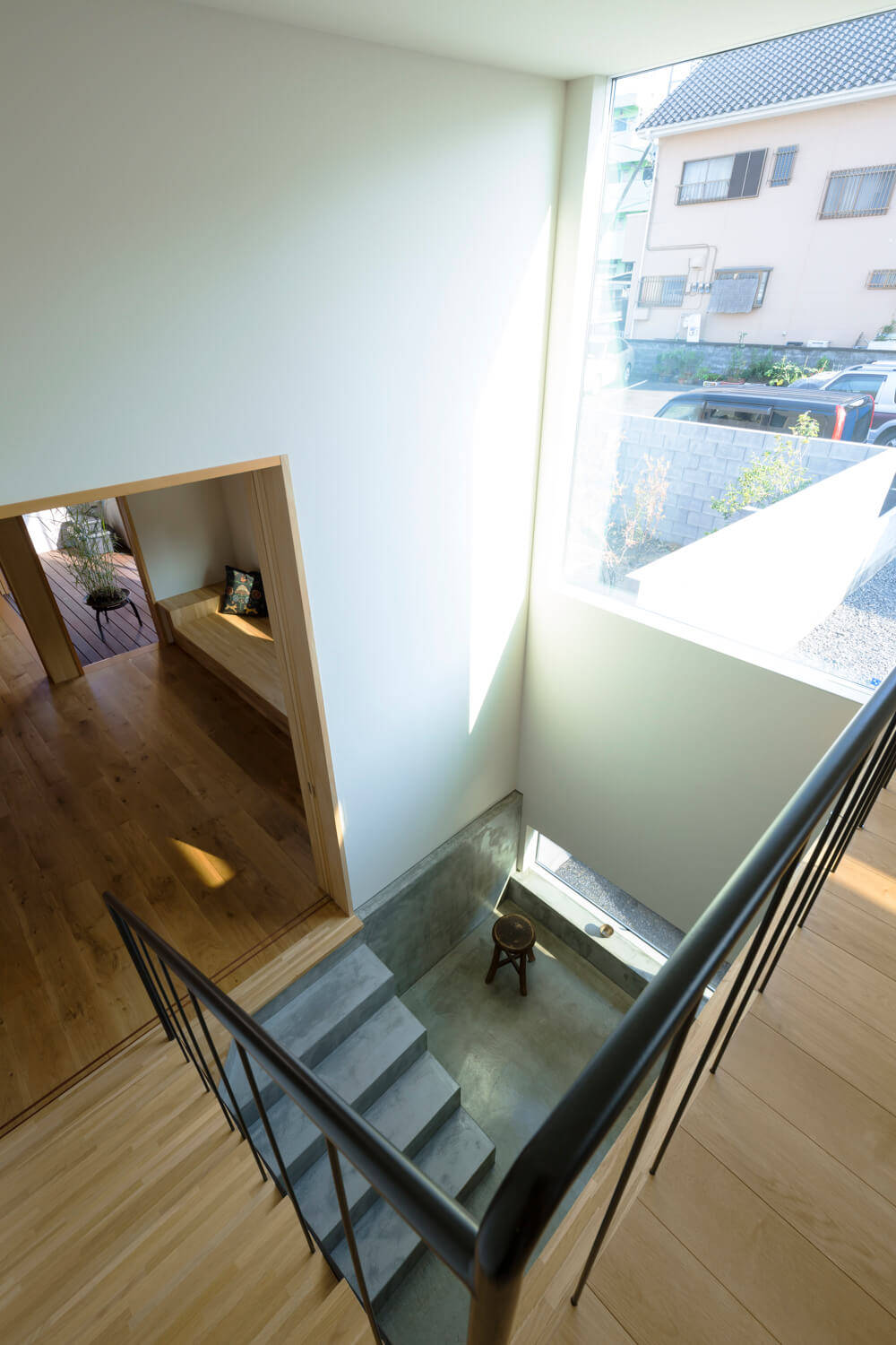 敷地の中の1mの段差を生かした、スキップフロアの住宅。