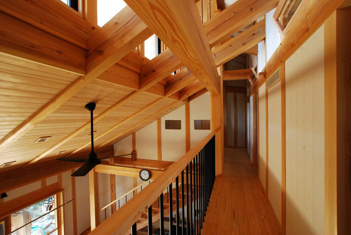 木組み・土壁の家 五角形の屋根は傘のような木組みが印象的...