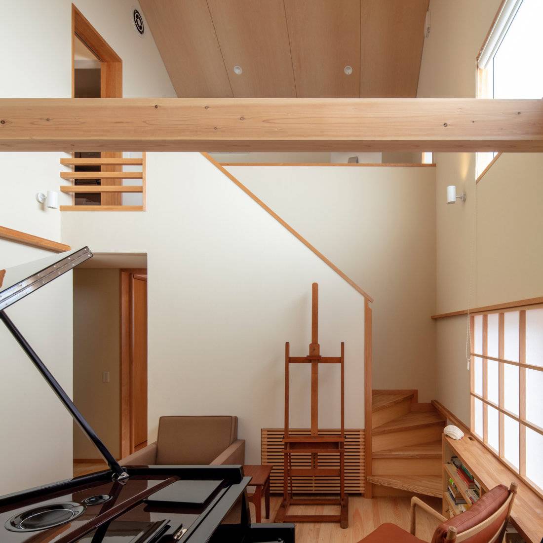 アトリエ上部は吹抜けで、書斎とつながり、