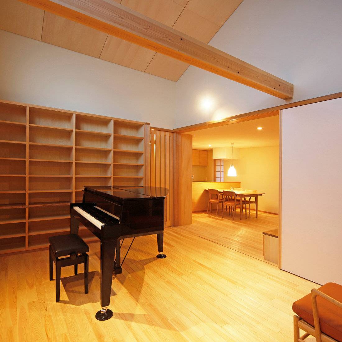 北側の上部の大きな開口からやさしい光が入ってきます。