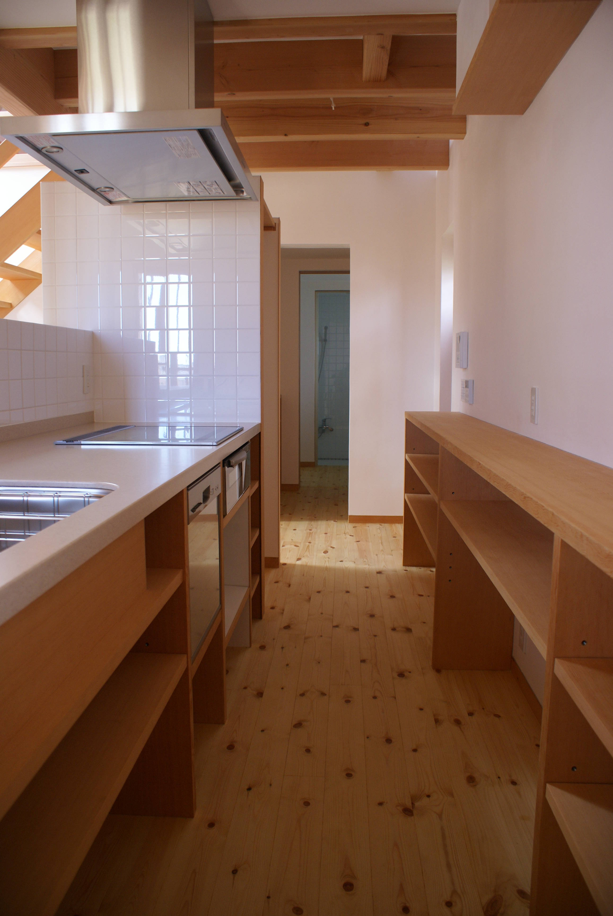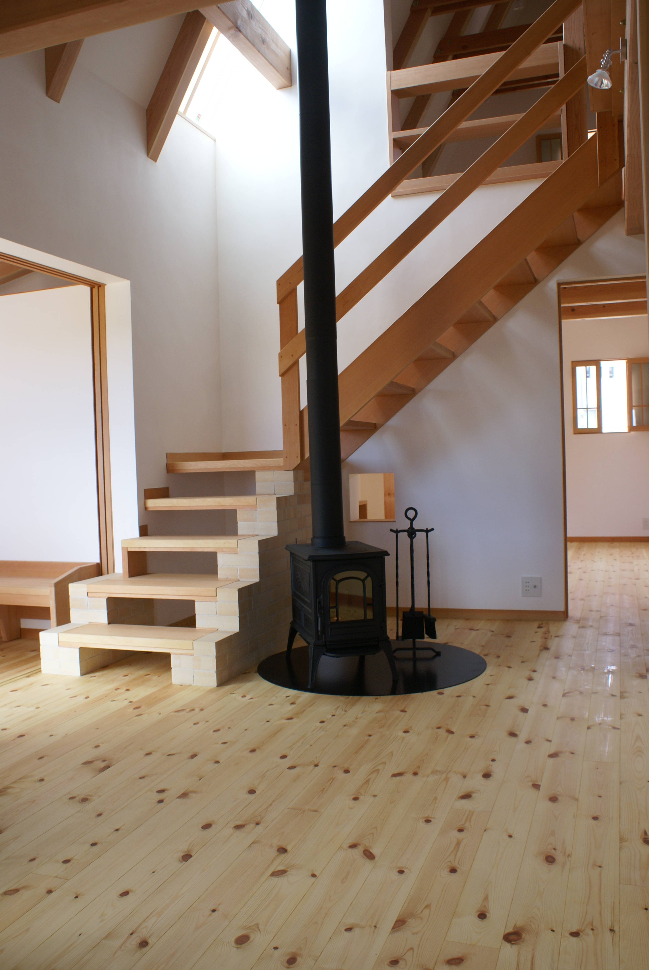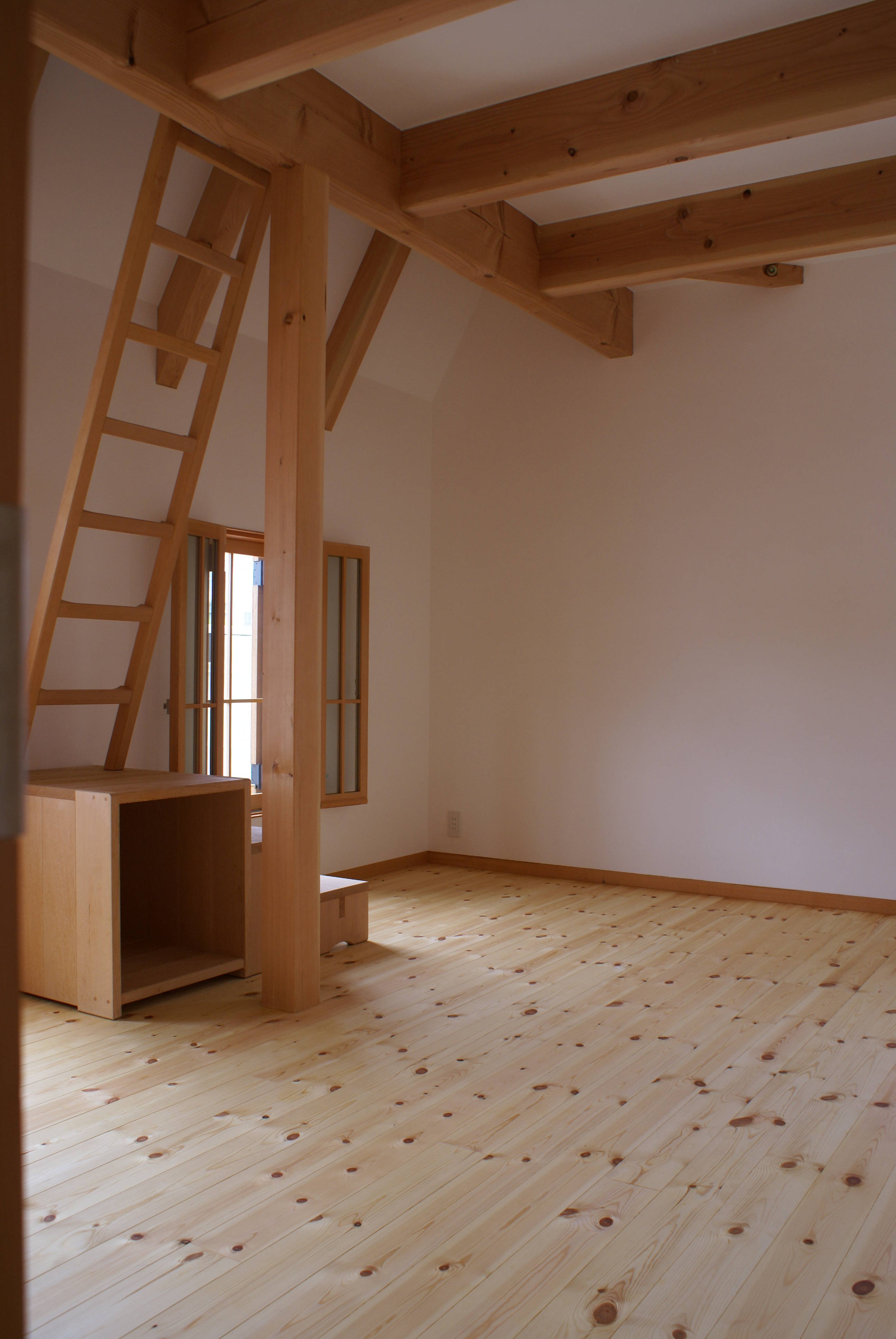 麦畑の広がる田園に建つ家は力強く架構された木造住宅。