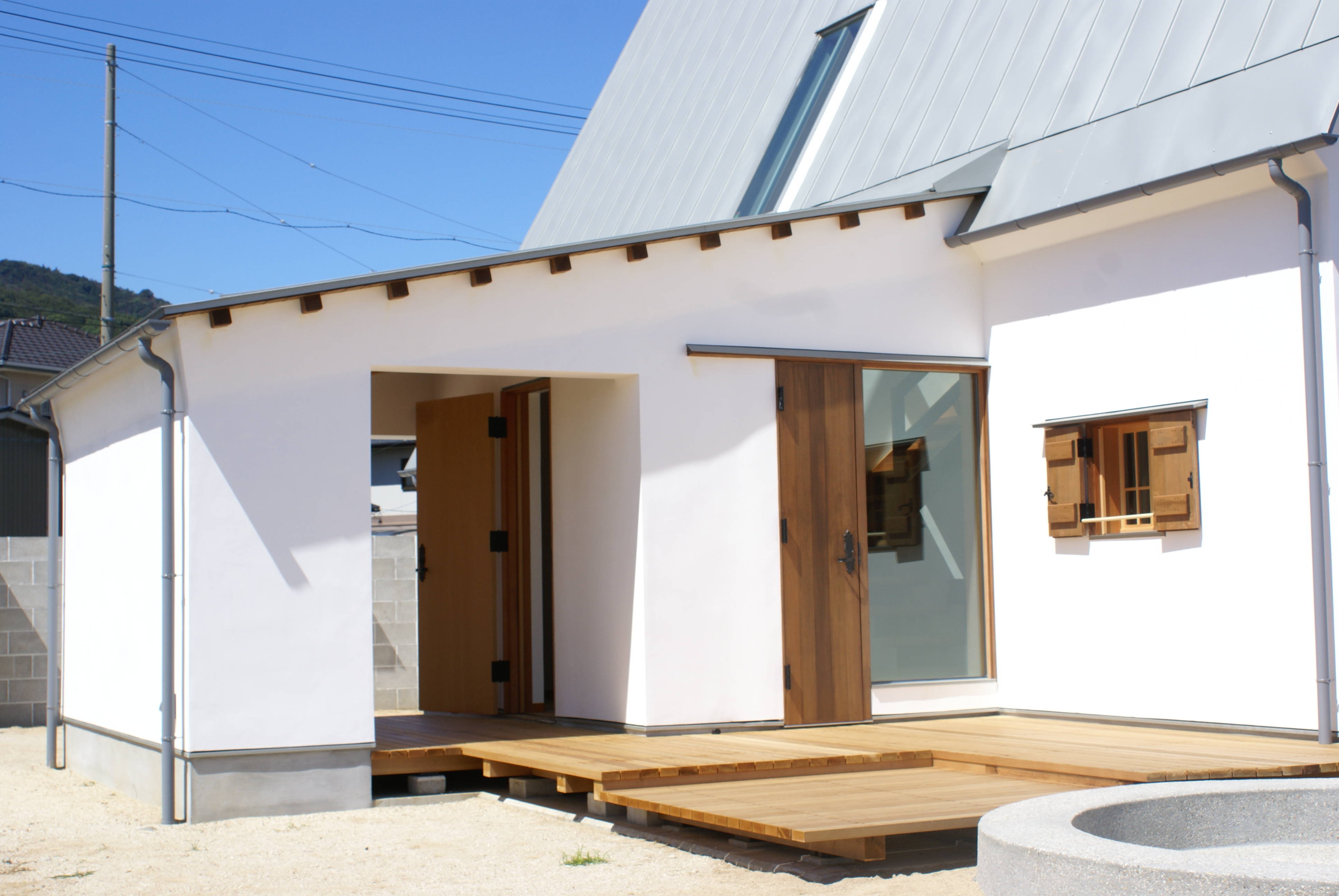 平勝寺ご住職の家。木舞組土塗り下地に漆喰壁仕上げ、和瓦一...