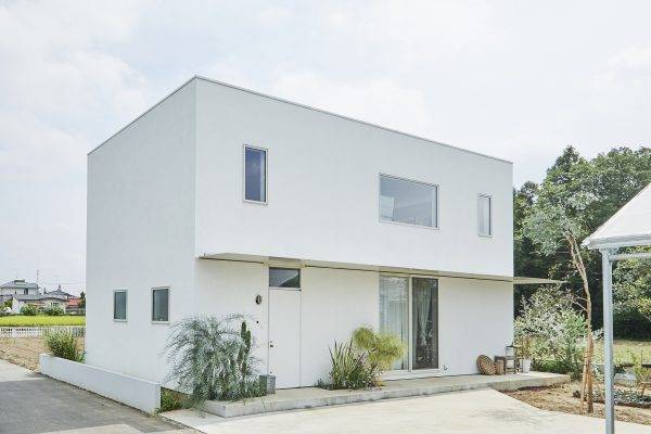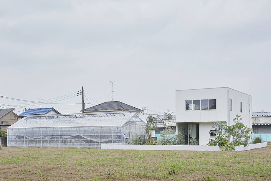周りが畑に囲まれた場所に立つ白い家である。