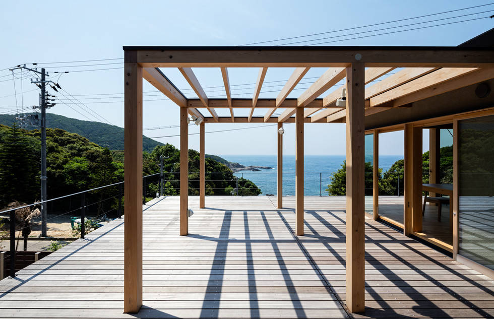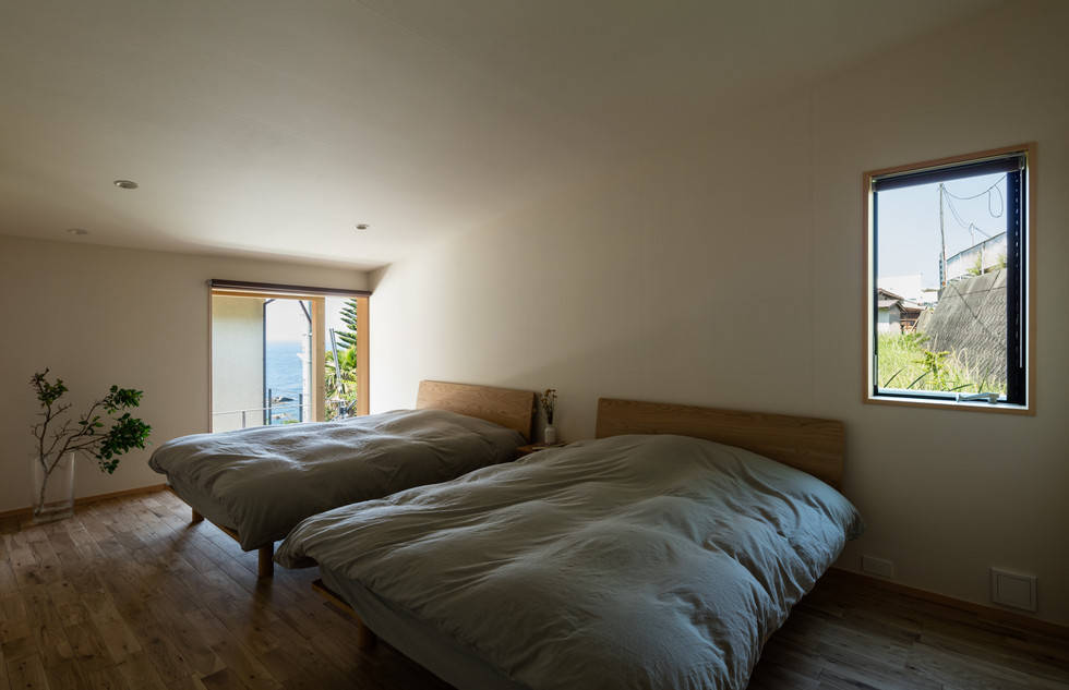 目の前に海が広がるという、決して変わることのない風景をもつこの住宅では、都市の中では実現できない風景や周辺環境との関わり方をより単純に考え構築していった。