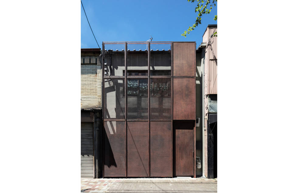 更に周囲より少しセットバックした環境であったため、エキスパンドメタルでファサードにもう1枚レイヤを重ねる事で道路との心理的な距離をとりつつ周囲の建物との壁面ラインを揃え調和を図った。