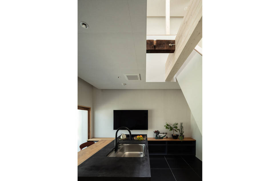 中古建具や既存のサッシ・ガラス、既存の躯体など古いものも利用しながら、断熱や遮音等の性能面や設備機器にも配慮し新しい素材も混在させる事で現代の住まいとして成立させている。