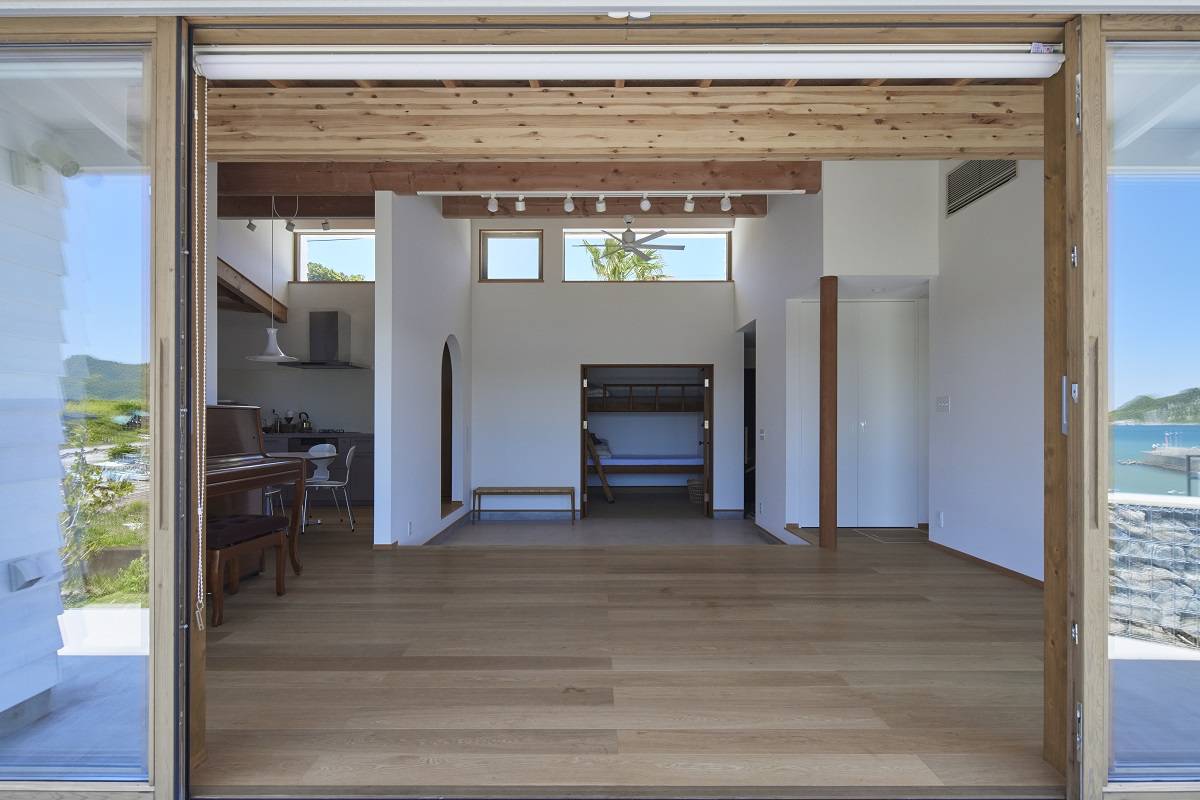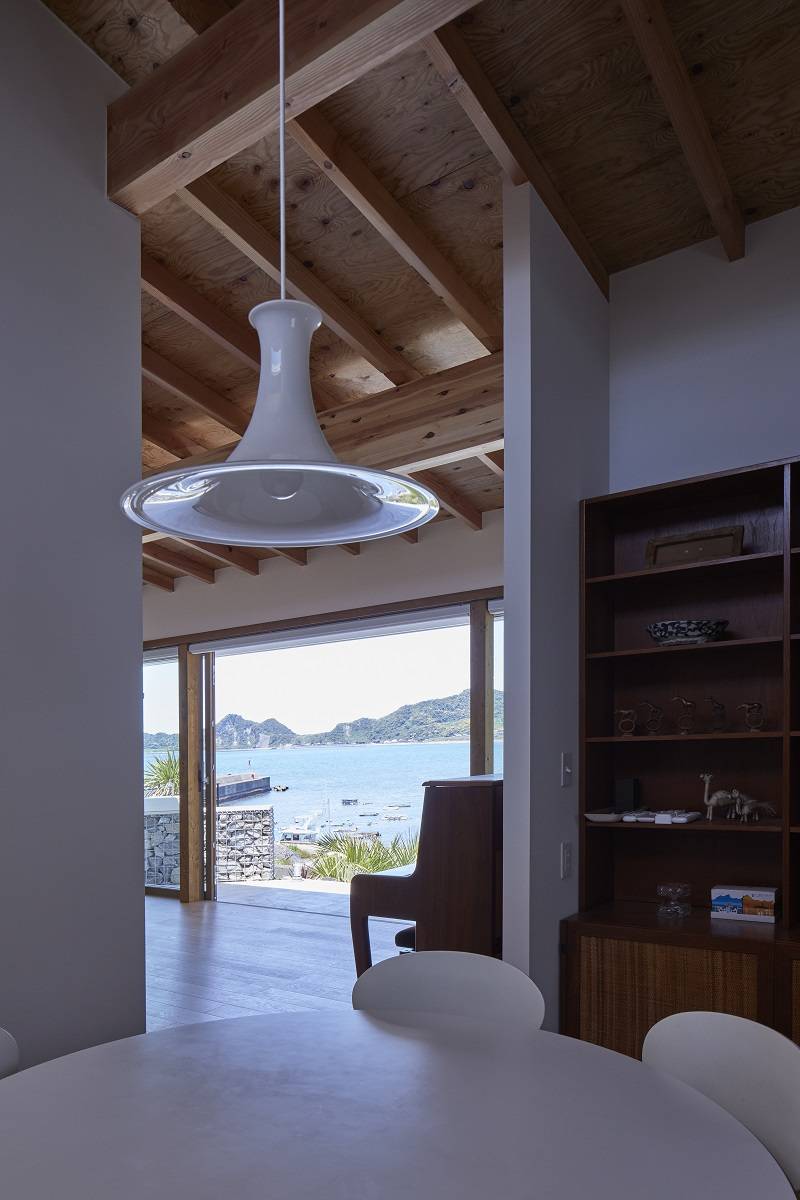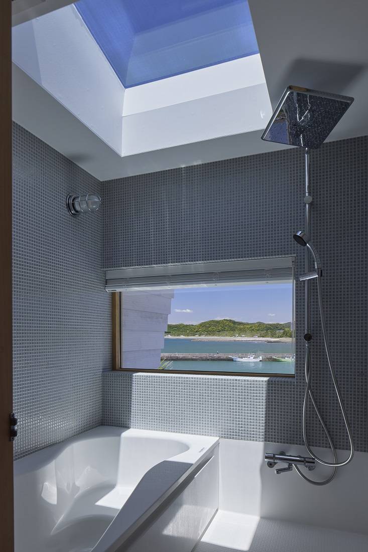 北面は、素晴らしい海と山の景観に対して大きな窓を取り、南の屋根には光を取り込むトップサイドライトを設けている。