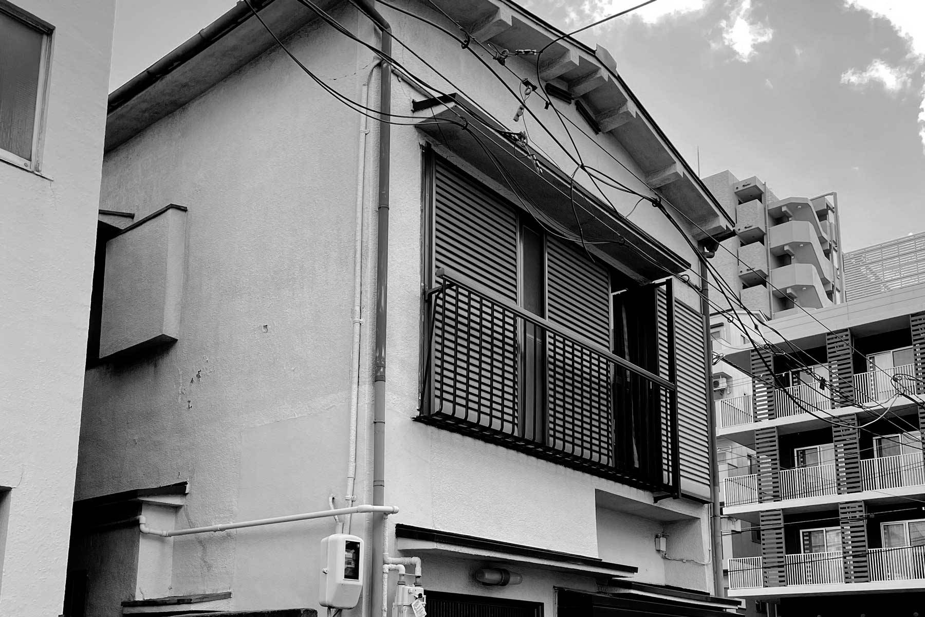 大阪市淀川区。大きなマンションやオフィスビルと中小の戸建住宅・商店が建ち並び、交通至便な反面、日照やプライバシーの確保が難しい住環境です。お施主様は50代男性とそのお母様。戦前から続く長屋街が時代と共に分割・建替えられ、ビルの谷間に最後まで残った1戸がお施主様の住まいでした。それを解体して建て替える計画です。