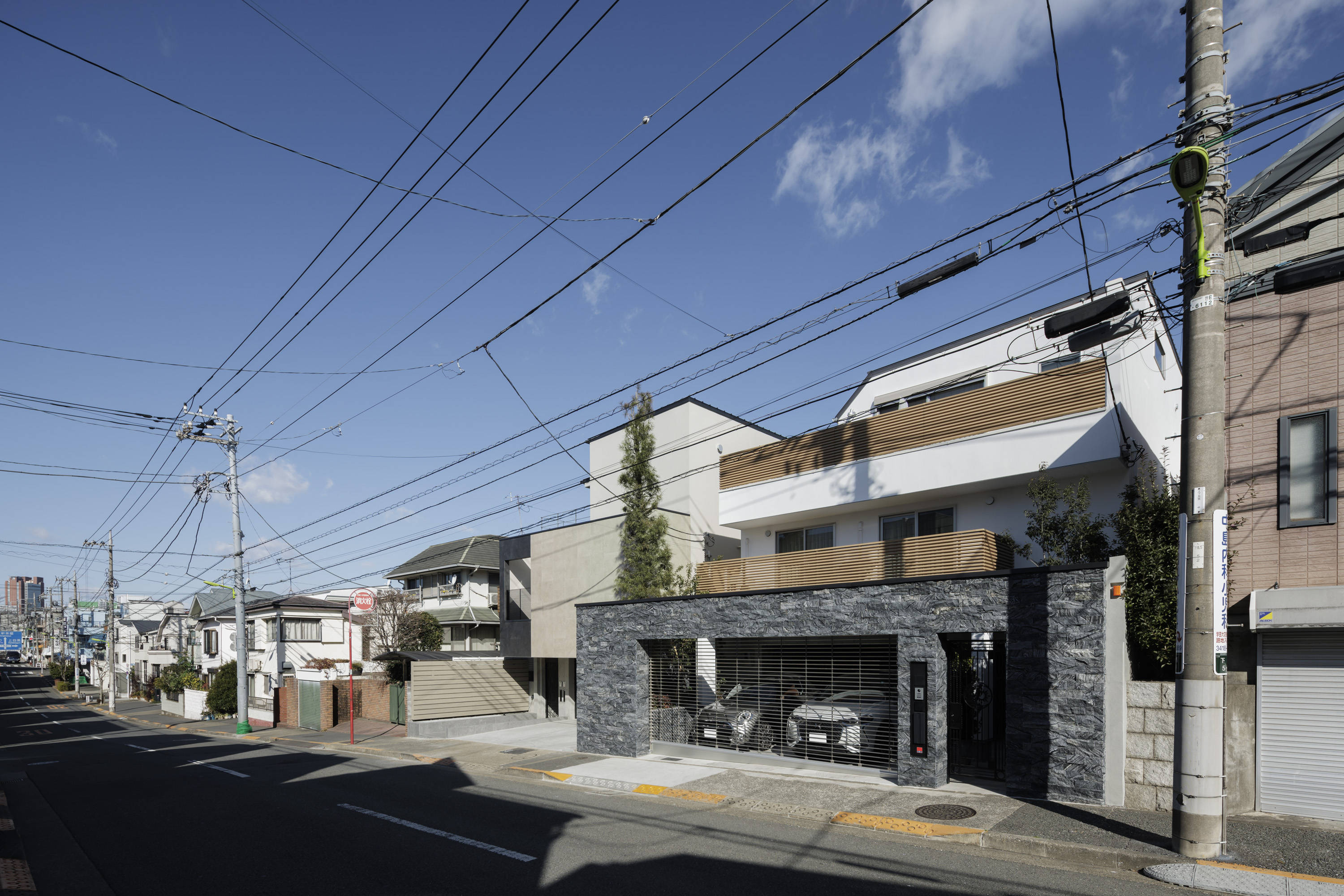 所在地 東京都世田谷区用途 専用住宅敷地面積 183.73㎡建築面積 116.59㎡延床面積 276.58㎡構造 木造+RC造規模 地上2階 地下1階竣工 2022年6月