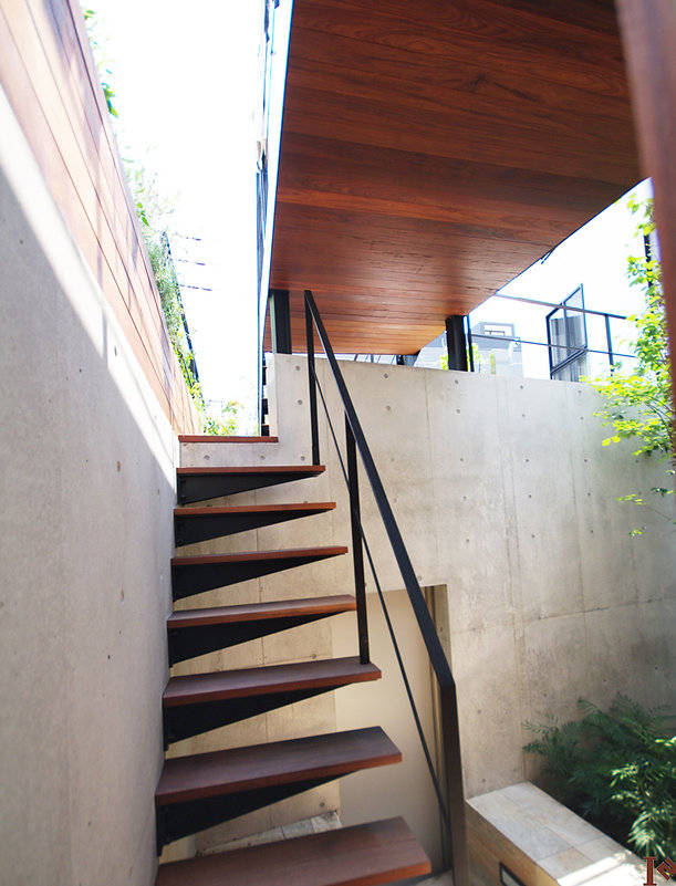 こうすることで、その谷底全てがまるで自分たちの庭になったかのような開放感が得られるのではないかと考えました。2世帯は平面的・断面的に庭を共有し、ゆるやかに距離をとる事ができています。