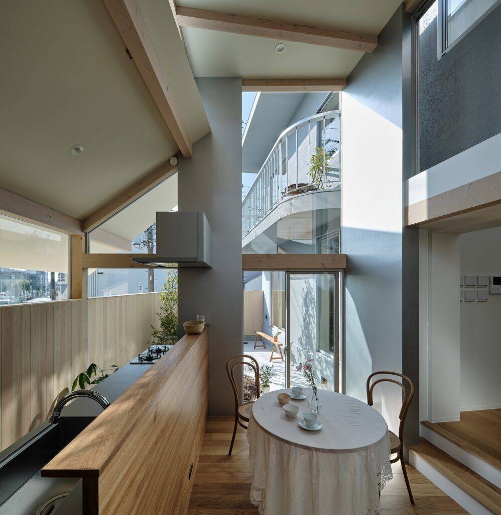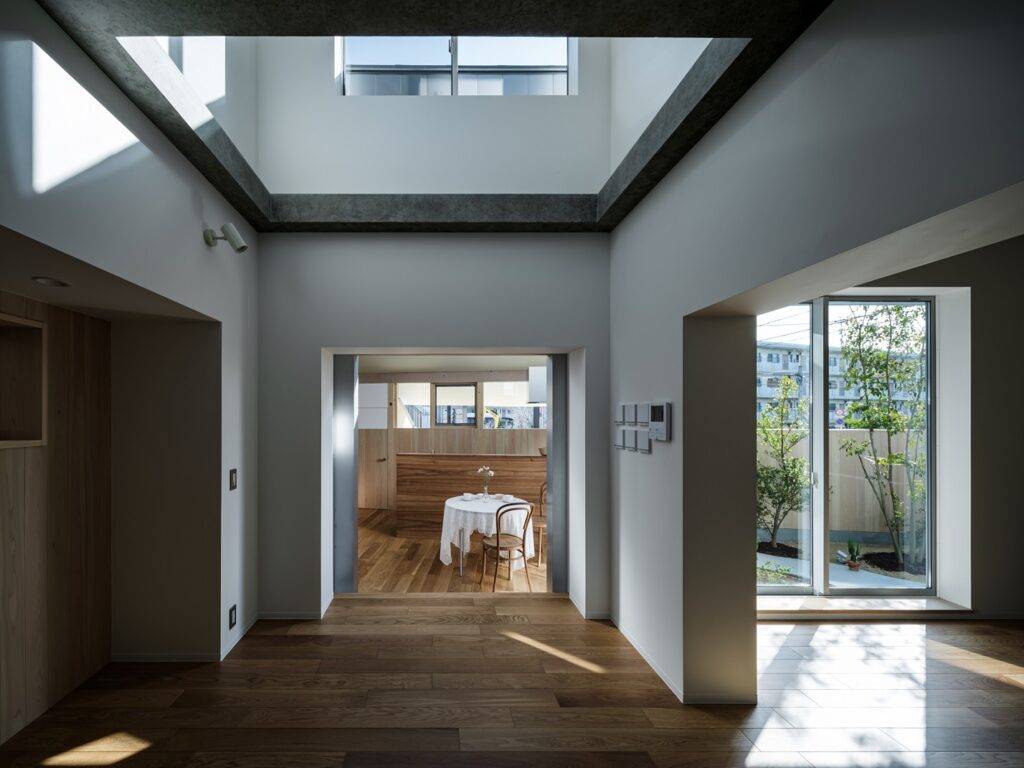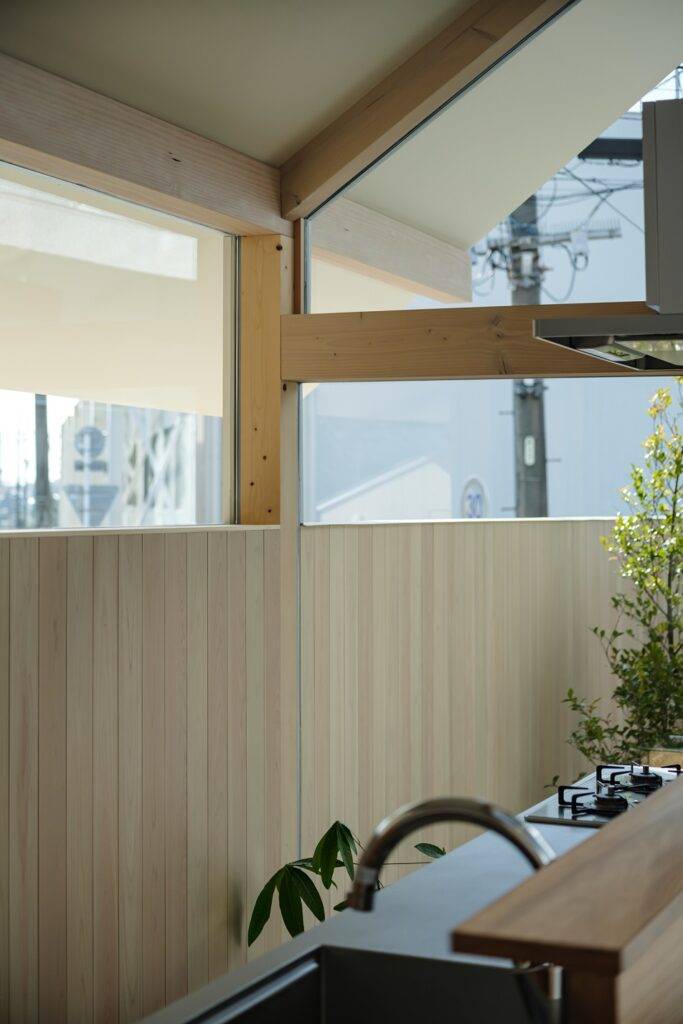 4人家族のための既存壁式RC住宅の増改築。既存は今回の施主の祖父が設計し1968年に建設された。仕事で不在が多い祖父が家族の安全を思い頑丈なRC造で建て、三世代に渡って住み継がれてきた家。祖父の目論み見通り躯体は今尚健全な状態だった。当初は建て替えの相談だったが、既存躯体の状態の良さ、RC住宅解体の費用等から建て替えと増築の両方を提案し増築の計画へと進んだ。