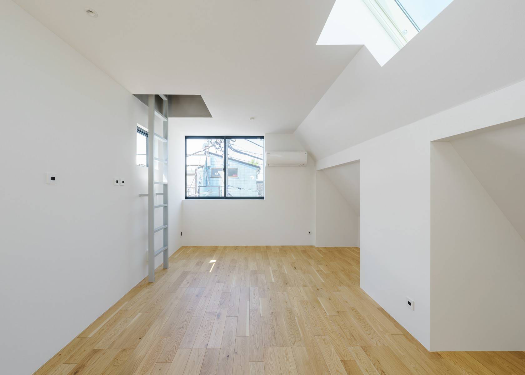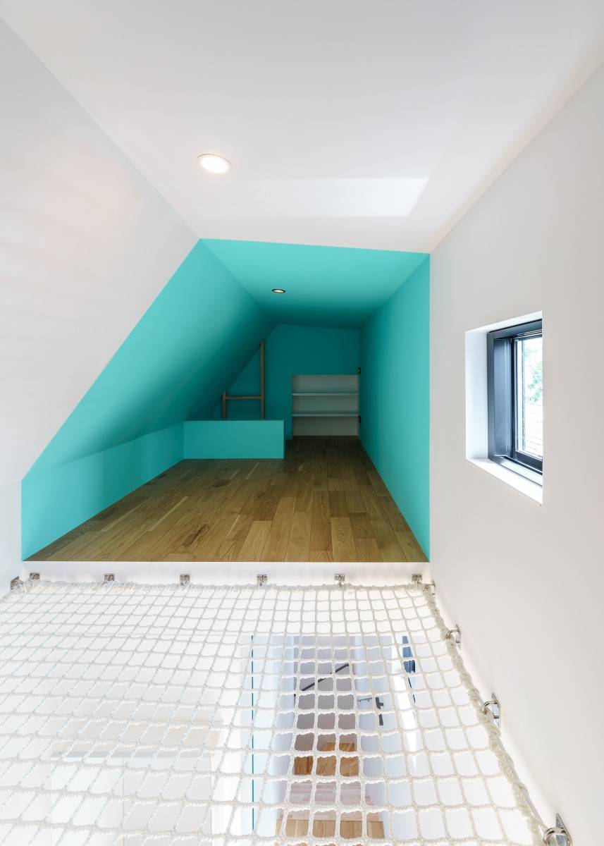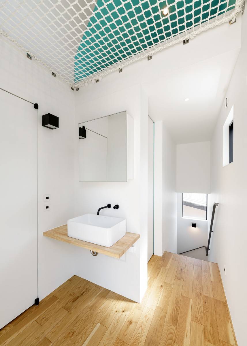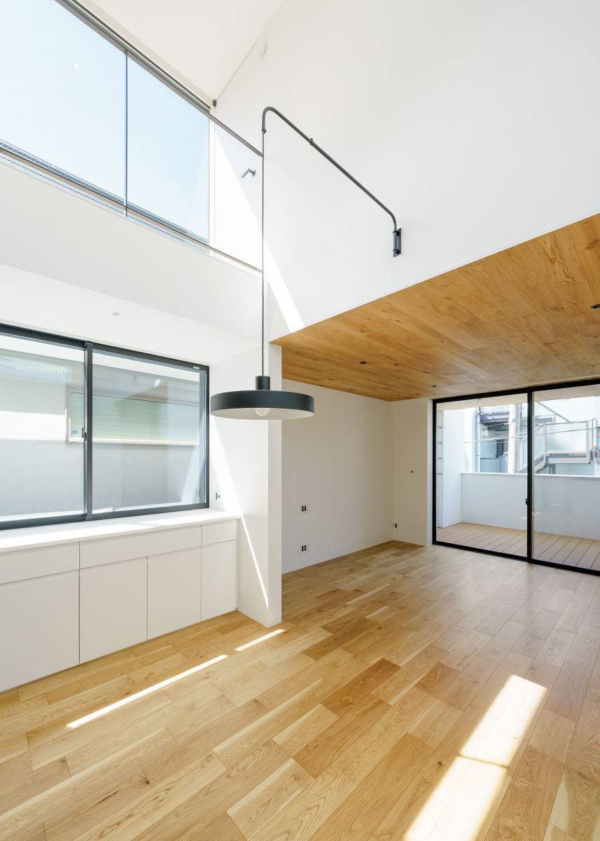 その3.5層の吹抜けの多方面に接するように開口部をデザインする事で、内部はプライバシーを確保しつつも、明るく開放感のある住空間を獲得した。