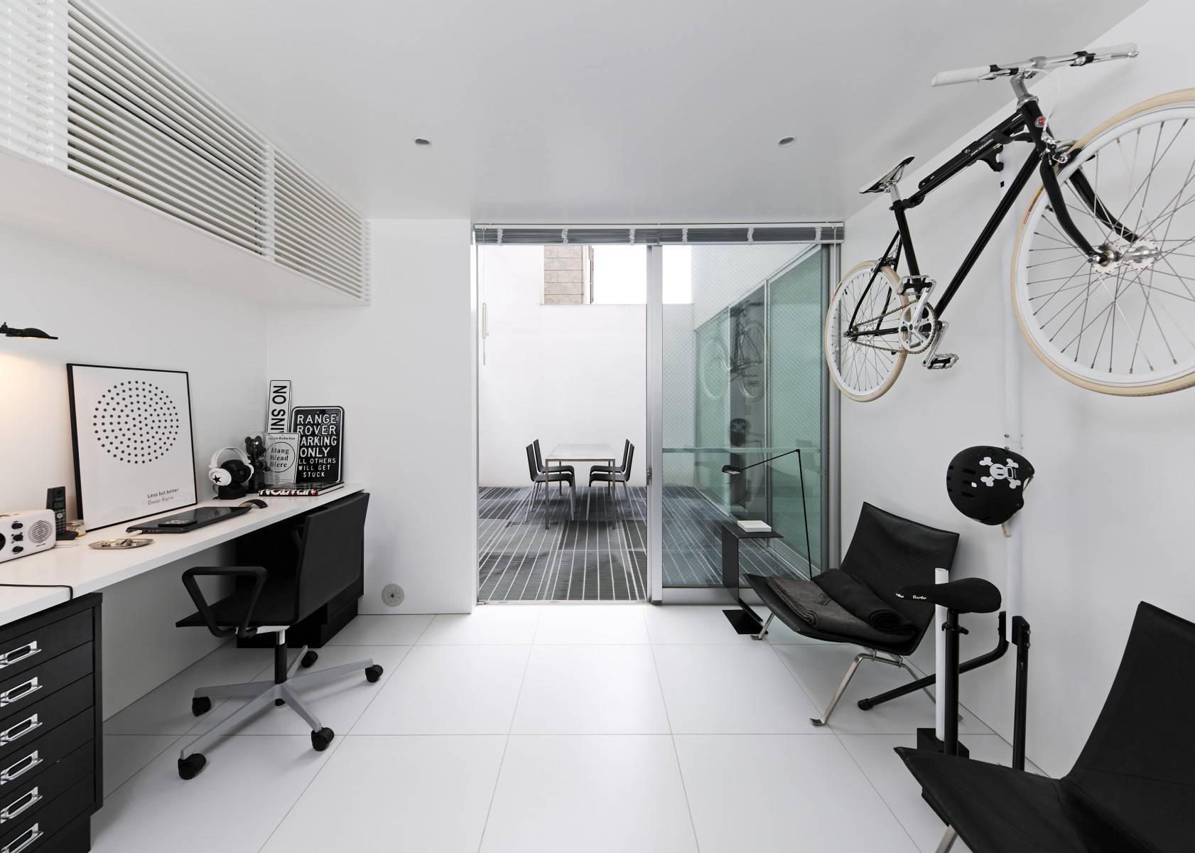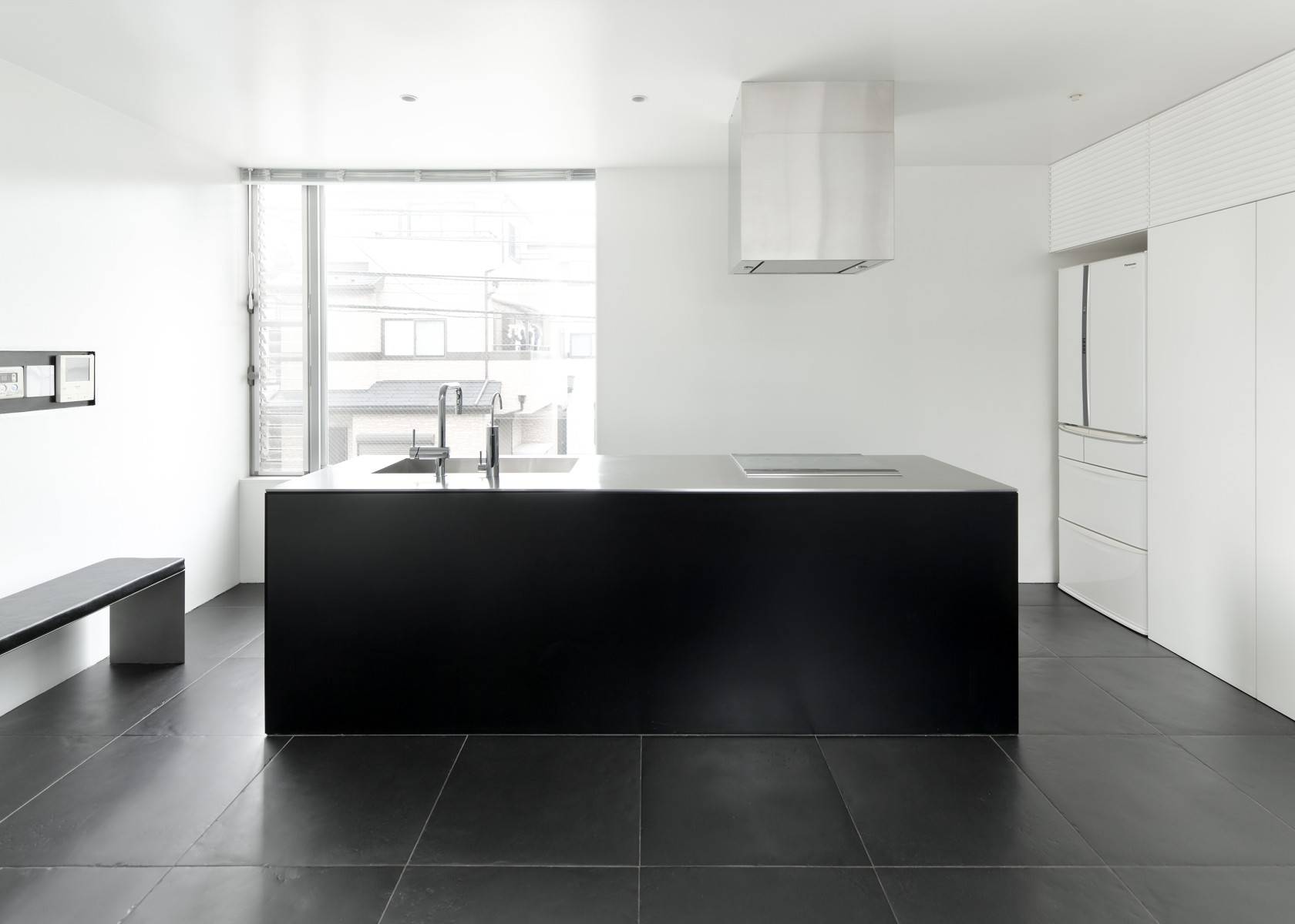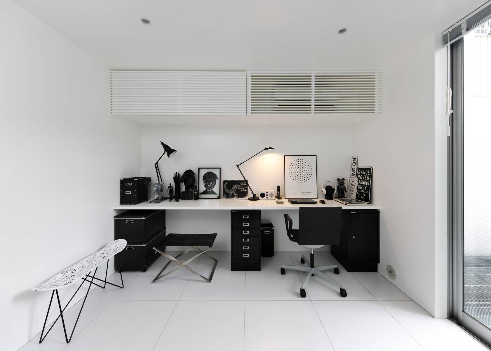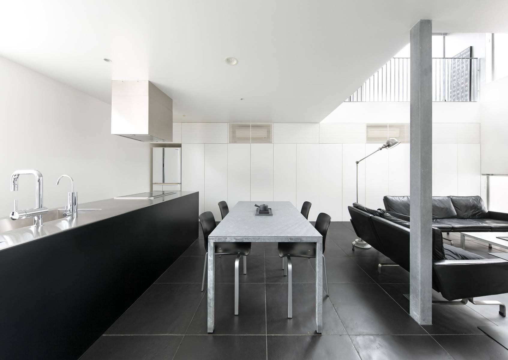 クライアントが買い足した「white」「black」「silver」の家具や備品が、建築の純度を高め、至高の空間が誕生した。