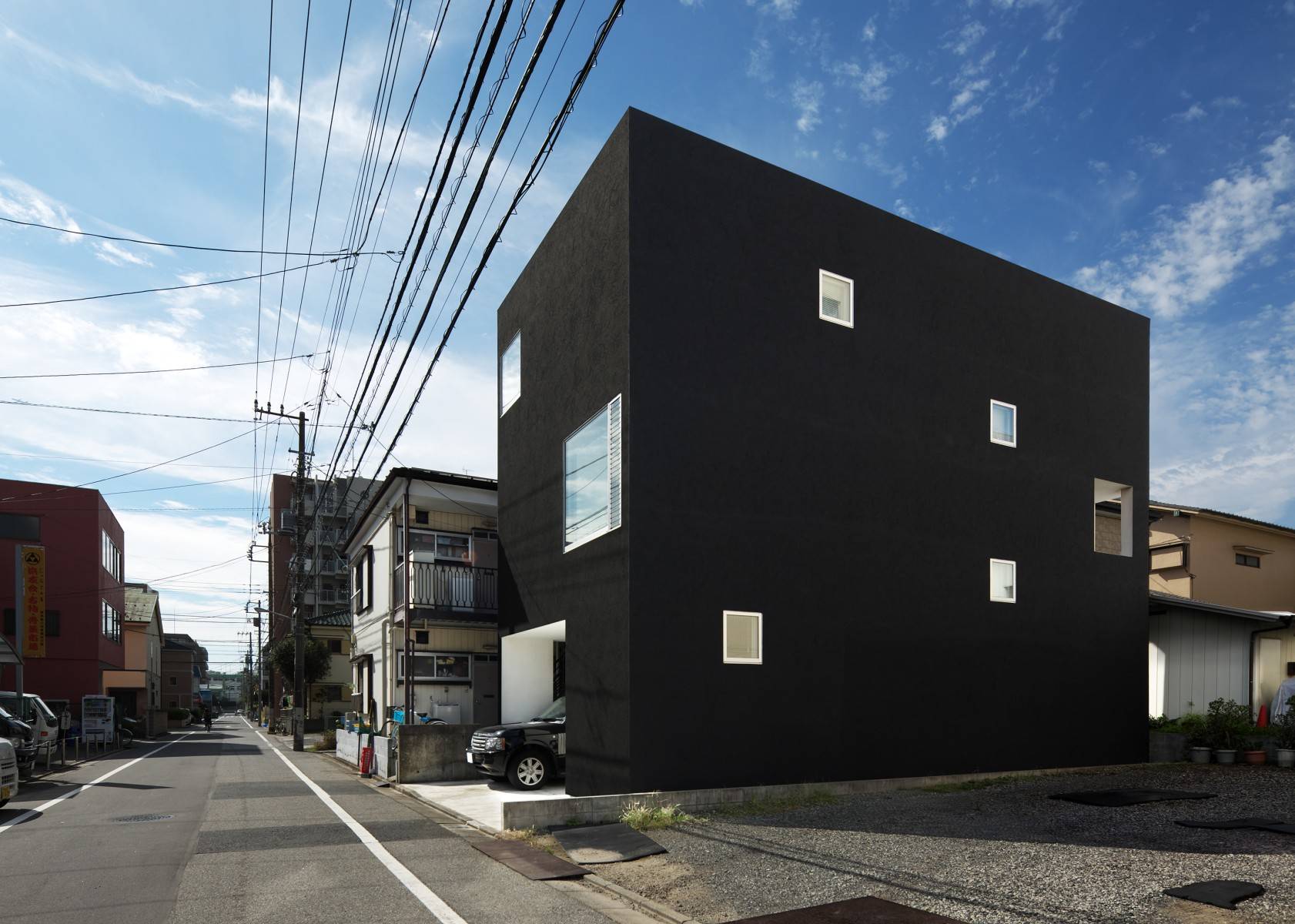「white」「black」「silver」の3色しか使用されていない唯一無二のスクエアブラックボックスハウス。