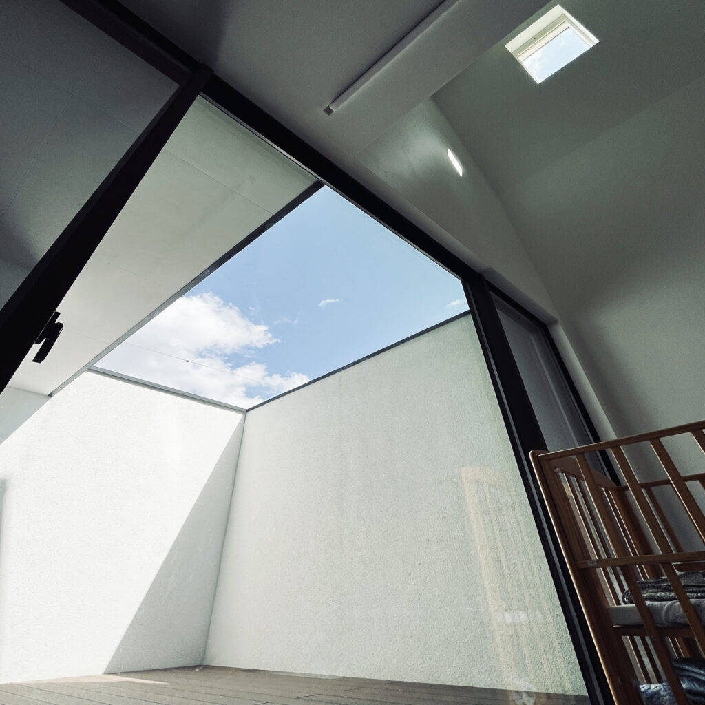 3つ目は壁の高いバルコニーです。空が住まいに滲みます。