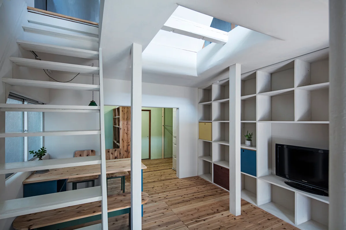 大阪でよく見かける築50年の建売住宅の改修です。住人は設計者の母です。これから老後を迎える母にとって平屋として生活できるように設計しました。