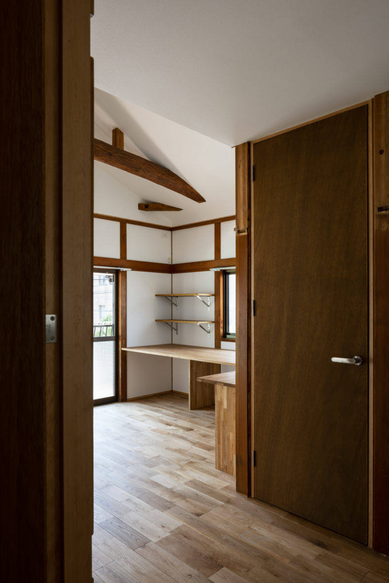神戸市にある、祖父母が暮らしていた空き家を孫世帯が引き継ぐための改修計画。建主は子供の誕生で広い面積と、本業とは別に行っている音楽制作活動のためにスタジオや録音室を欲していた。また、現在は別の場所で篭って制作している時間(制作)を改め、家族と過ごす時間(生活)との両立ができる暮らし方を模索していた。