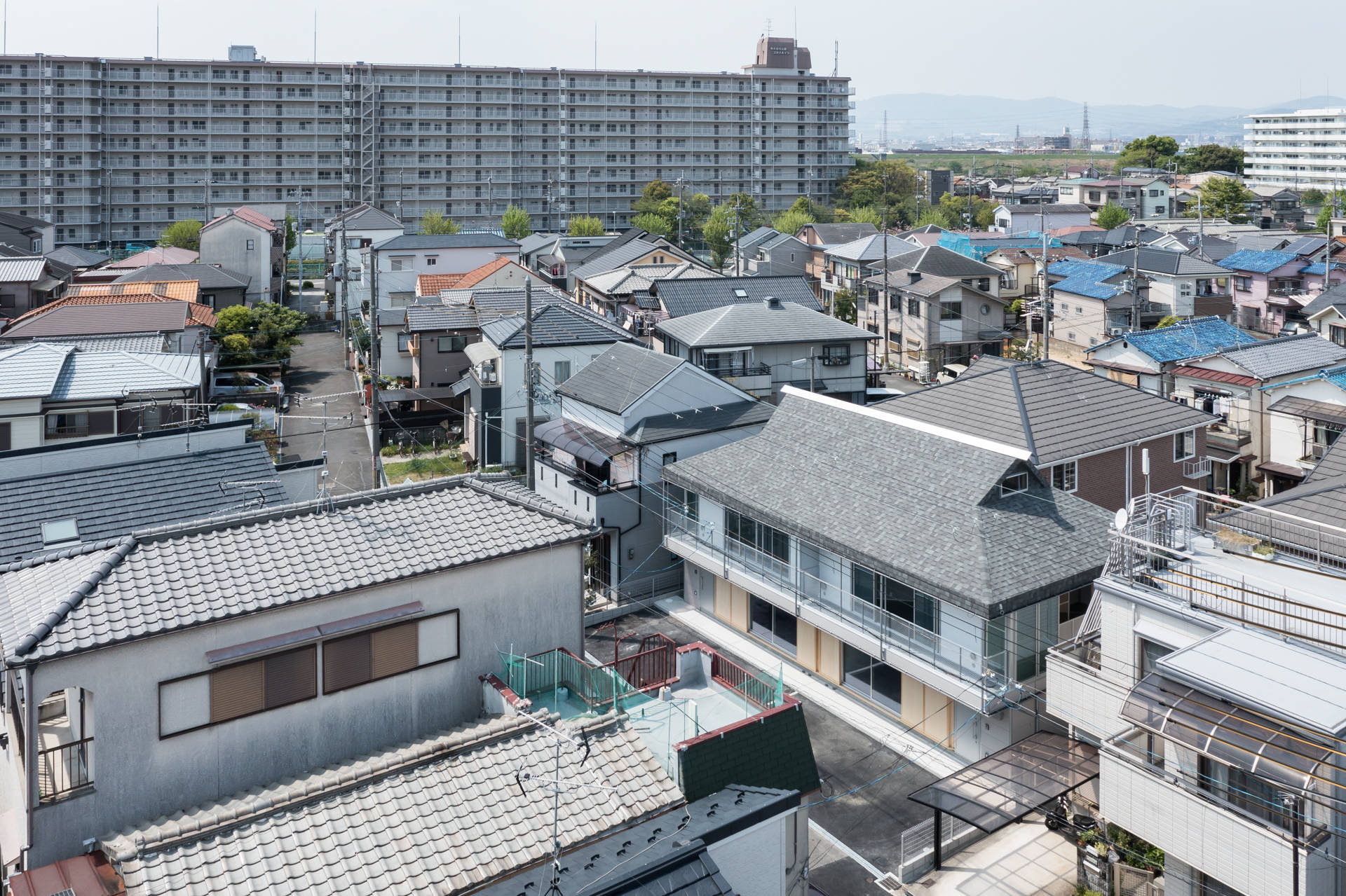 限られた予算の中で、今後人口の減少が見込まれるこの町において、既存の戸建住宅とは異なる住戸のストックの必要性と、かつての屋根の風景や子どもたちの遊び場といった、地域に開かれた在り方の可能性を考えた。