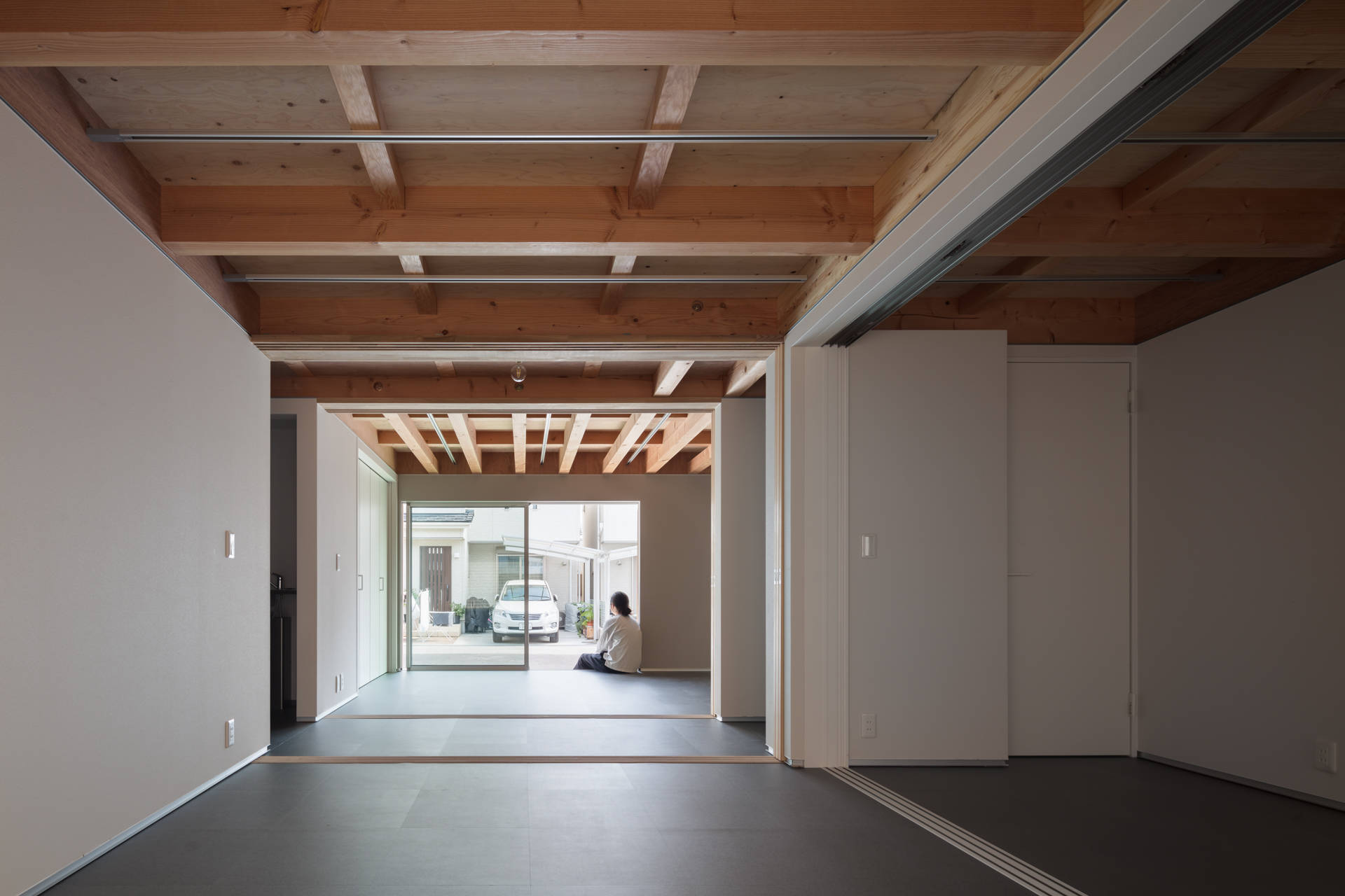施主と議論を重ね、住宅2棟を一体化して二連長屋(通称二戸一)とし、将来的に界壁を抜いて一つの大きな家にできる計画とした。