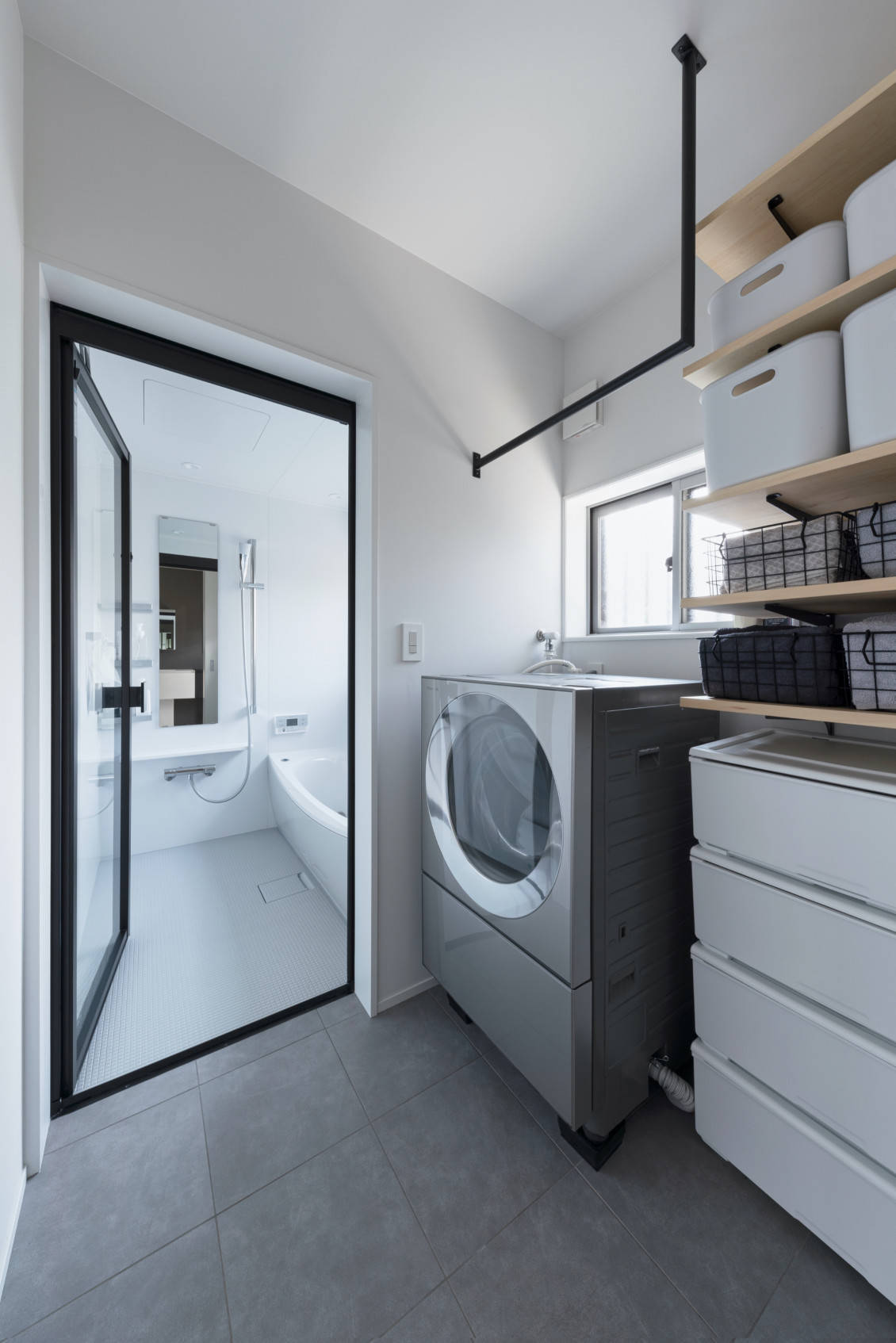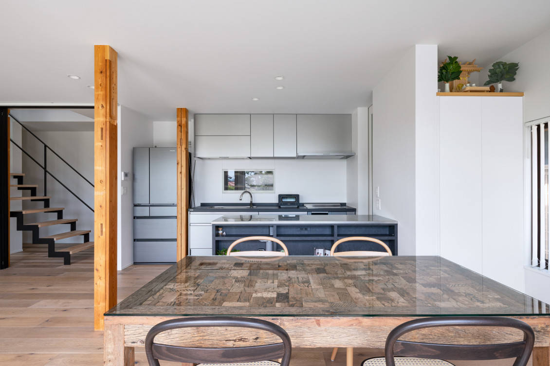 内装は思いきってガラス建具や鉄骨階段を採用しています。