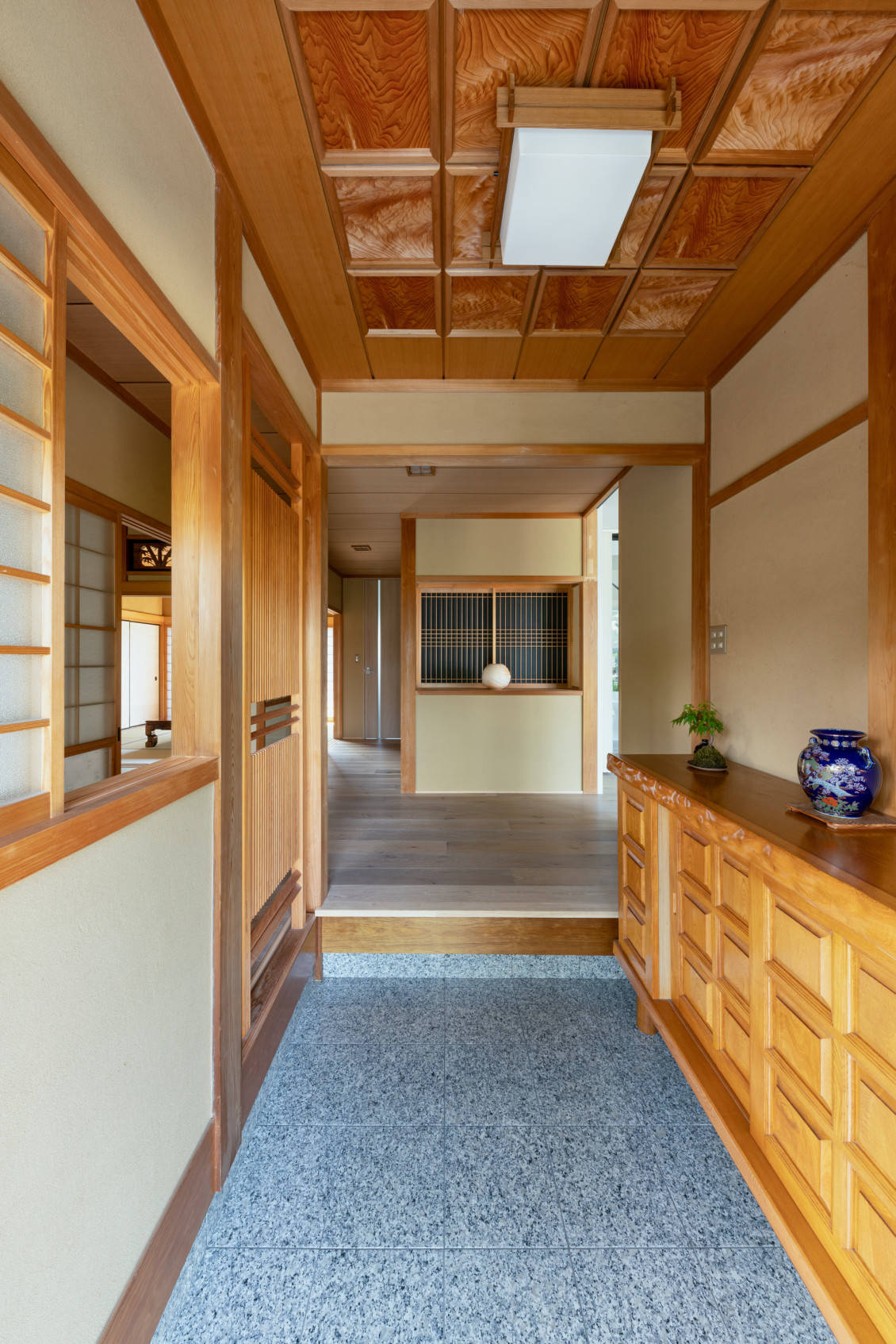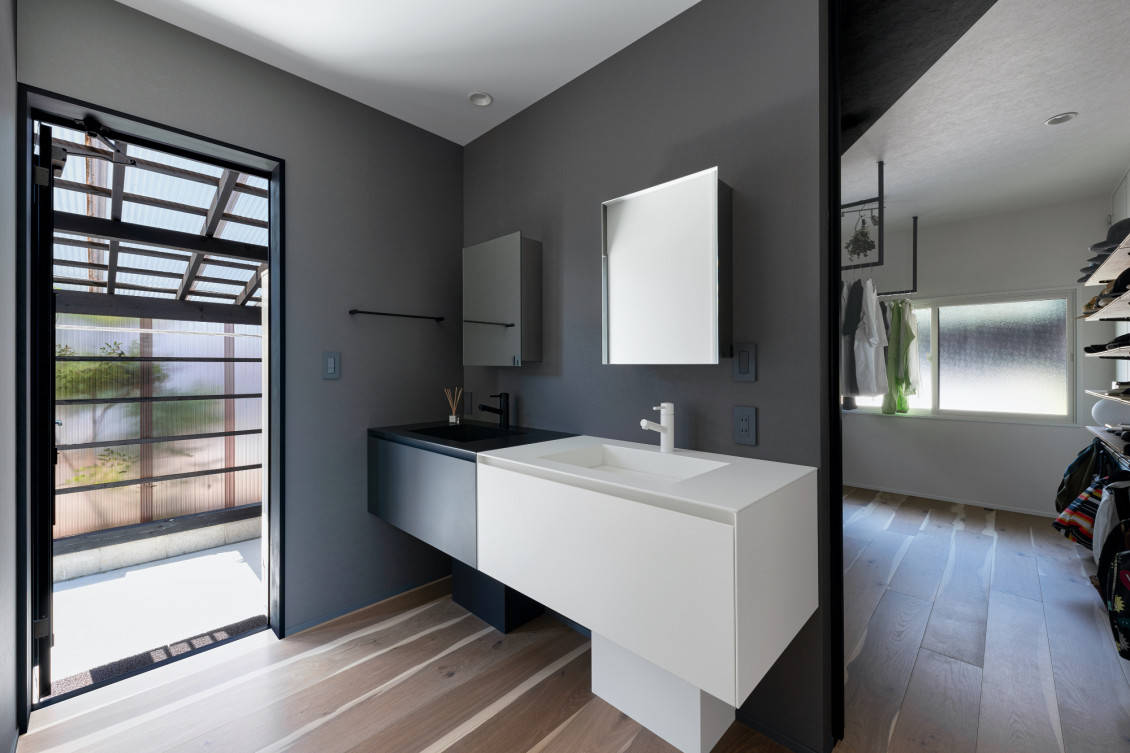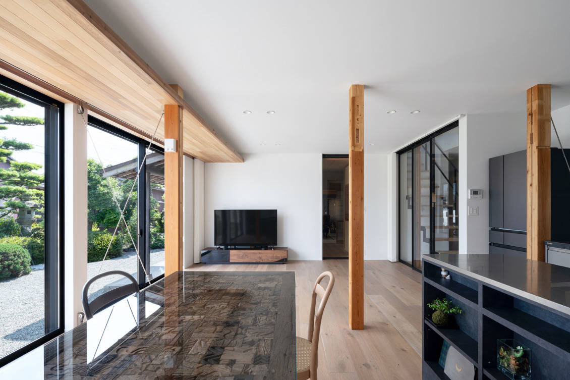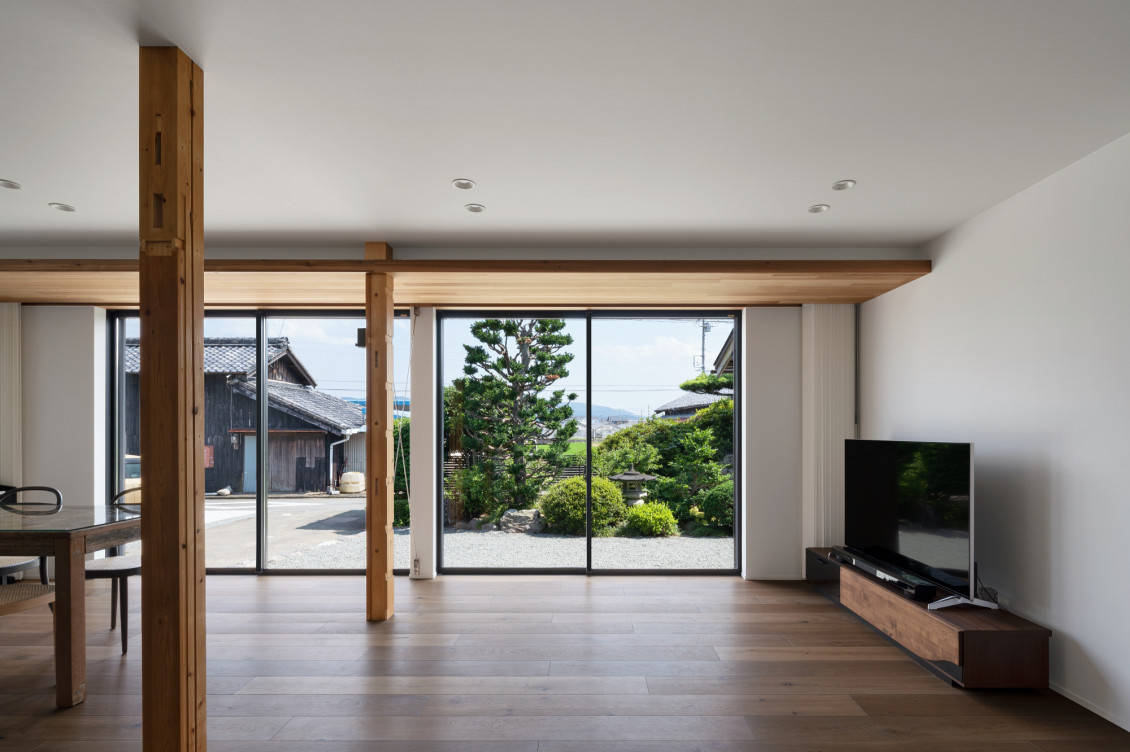 外観は押さえ縁のある木張りで調和を図っていますが、