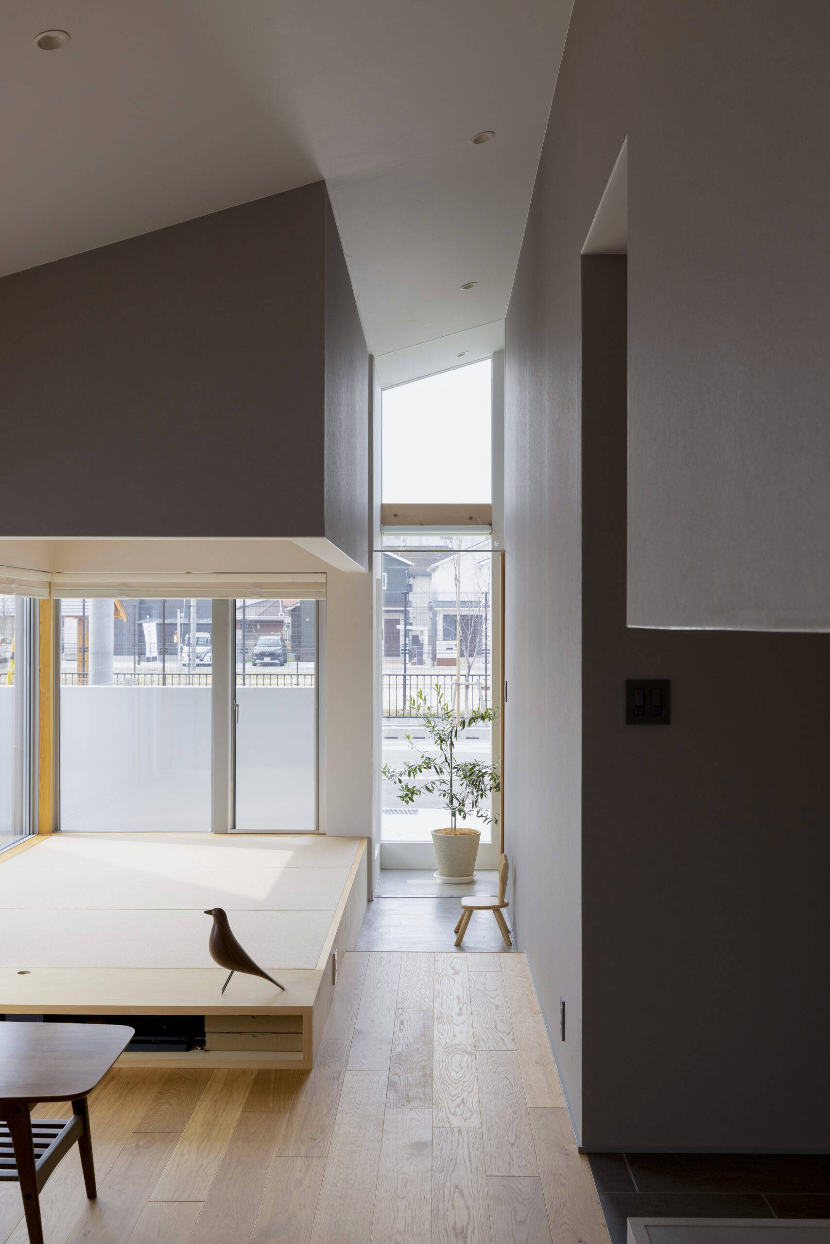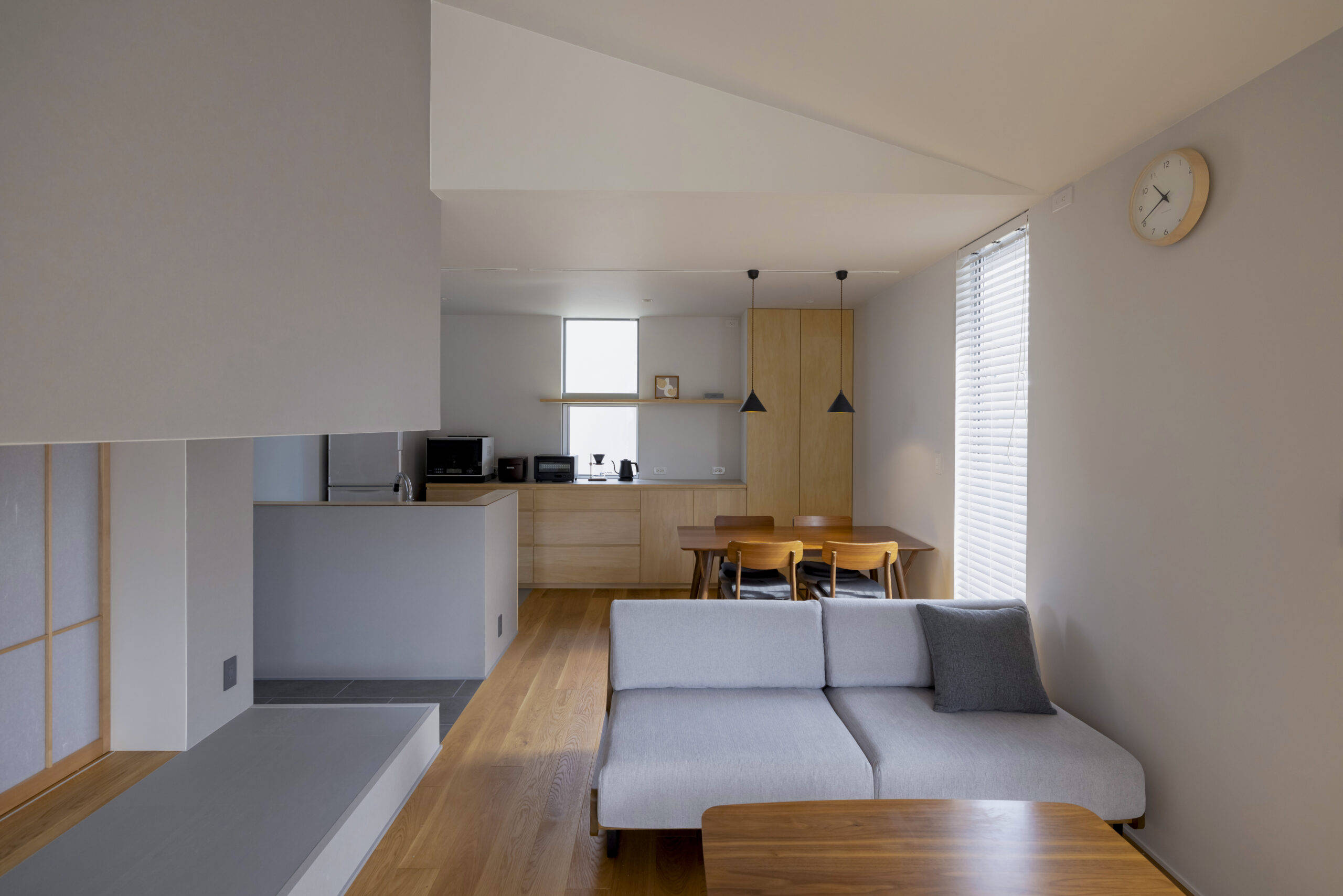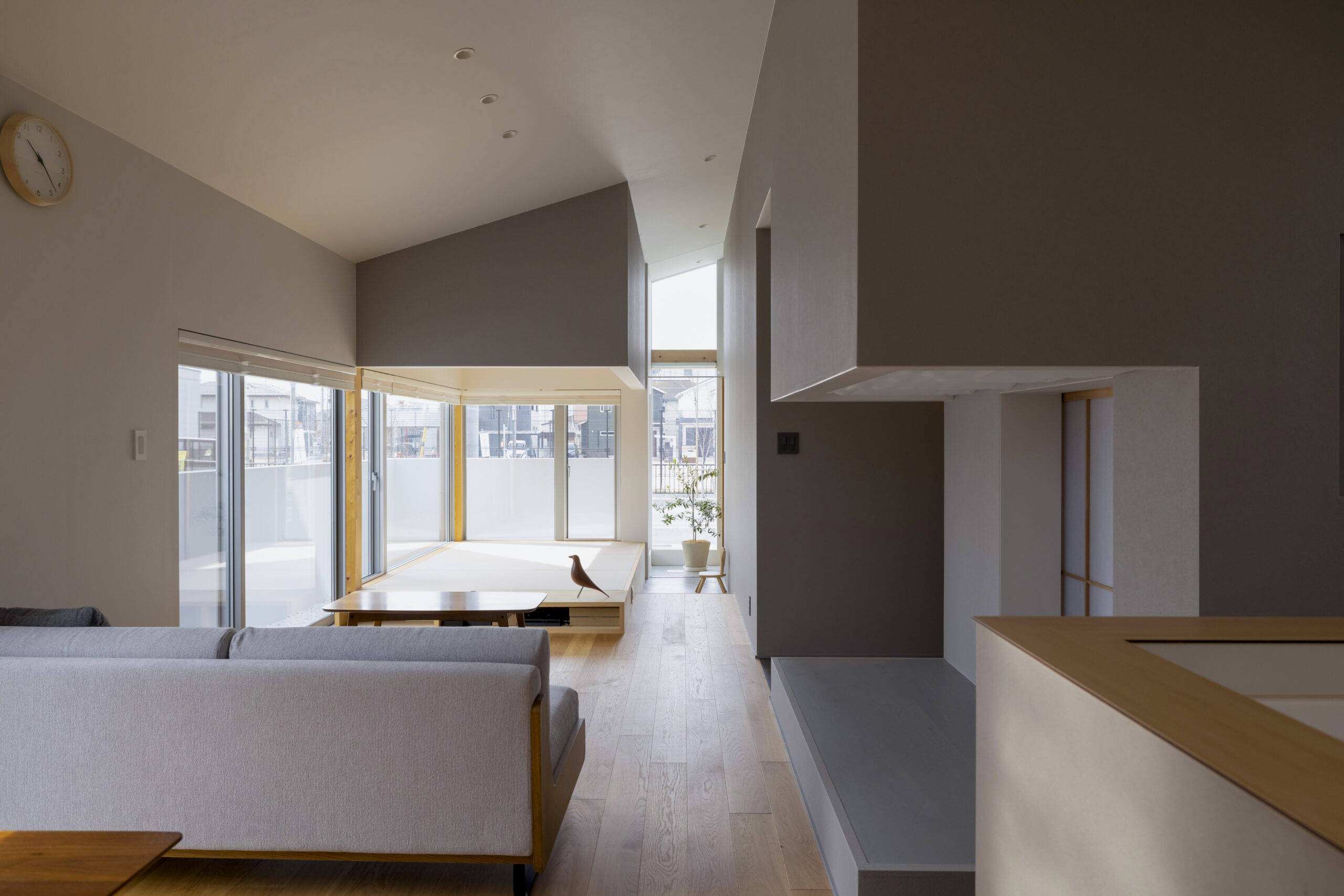 路地でプライバシーを確保された落ち着く空間と、広場のようなLDKでご家族が集まる空間を両立させることにより、生活に豊かさを与えられるプランとなりました。