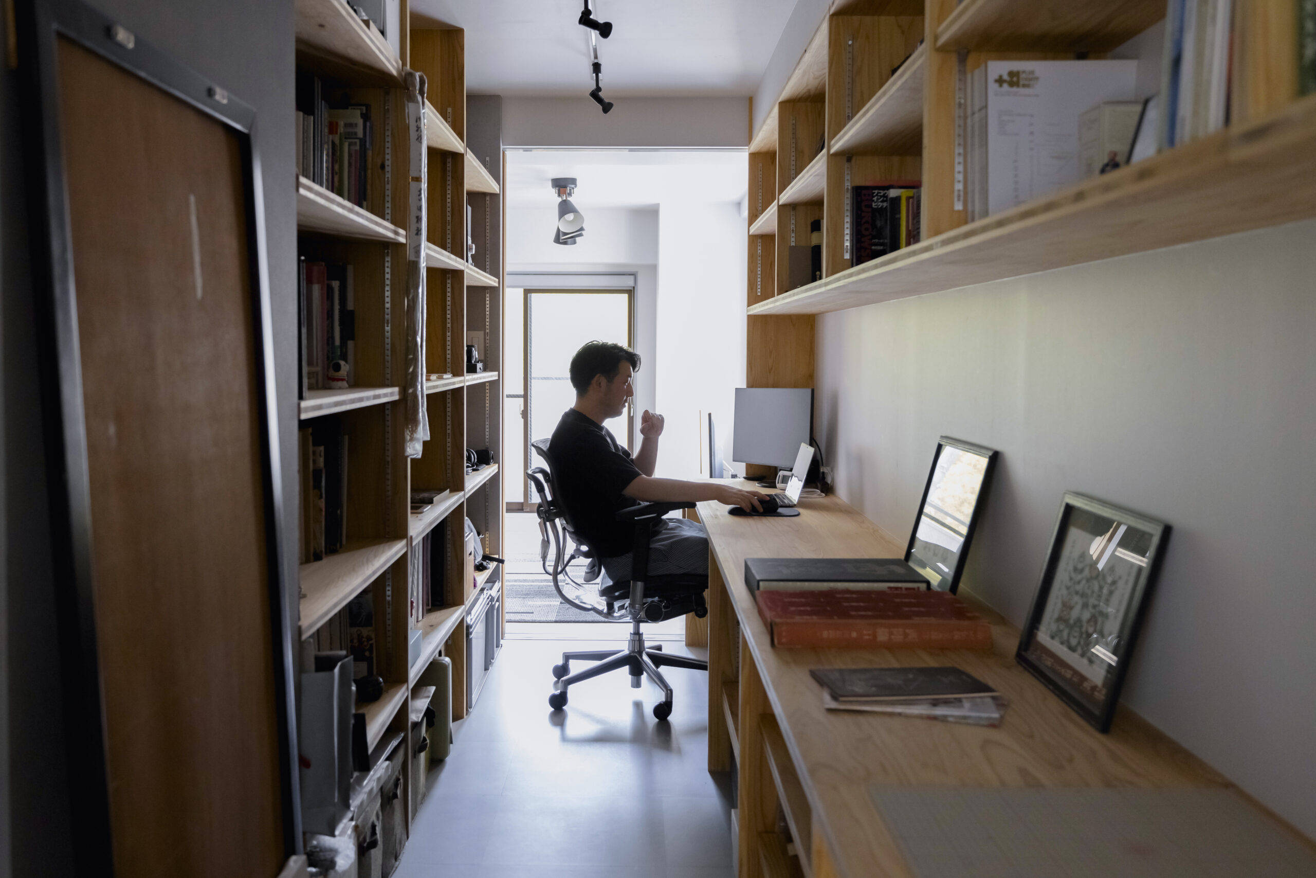 そこで、マンション中心部にコアとなる収納を設け、職と住を分ける計画としました。