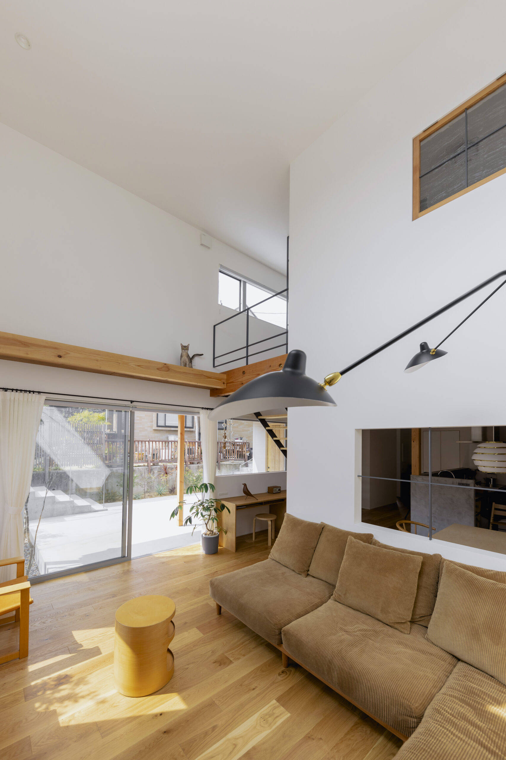 こうして外を感じ、猫との生活を感じ、レイヤーを通して家族の気配を感じることのできる、豊かな住宅となりました。