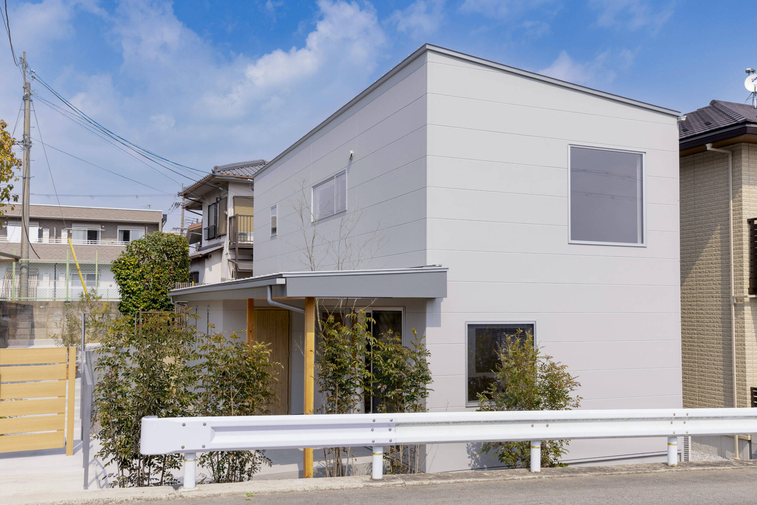 西側には、母屋があり、南の道路からの目線と東のアパートからの目線を遮りながら、西側の母屋側に開く計画としました。