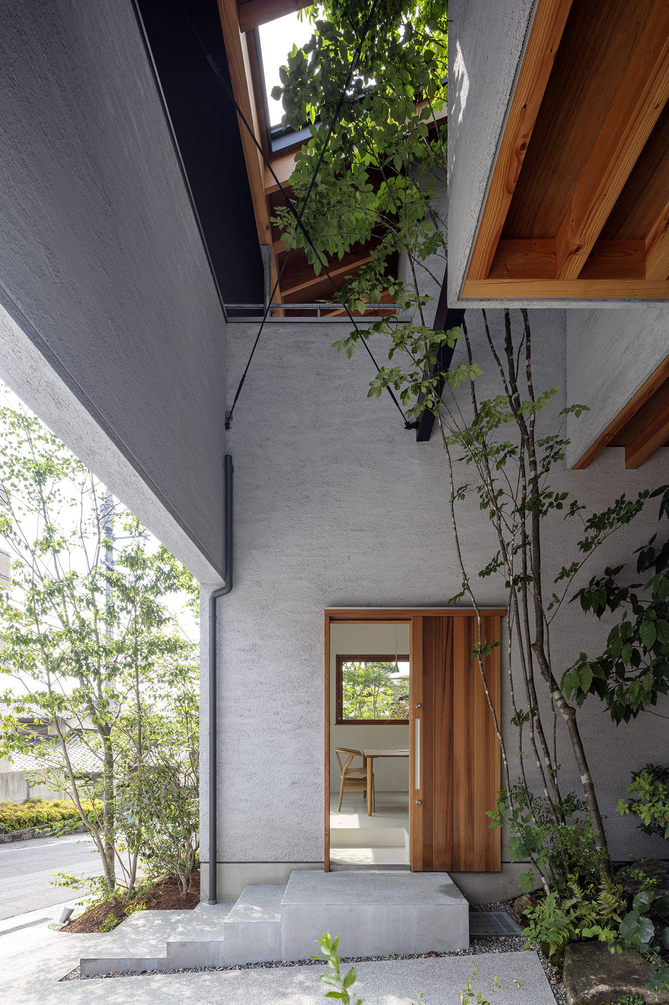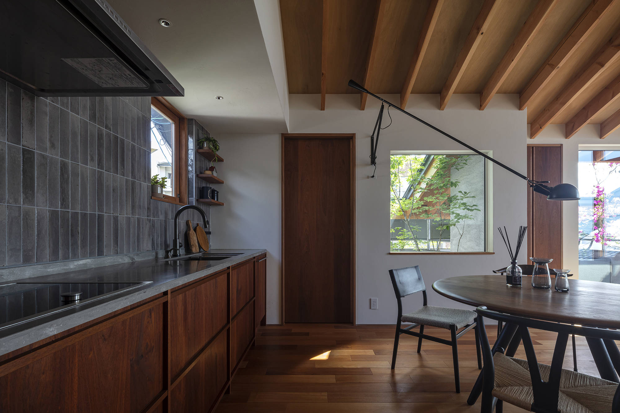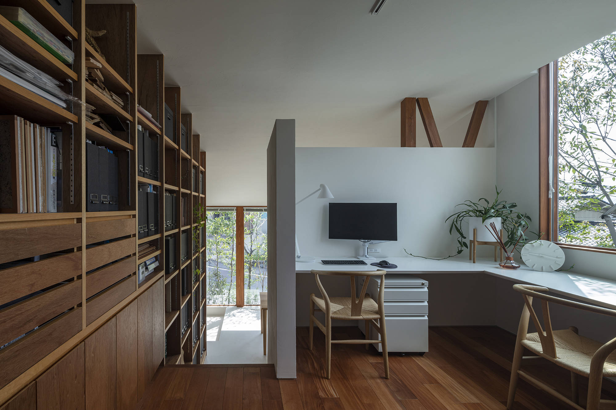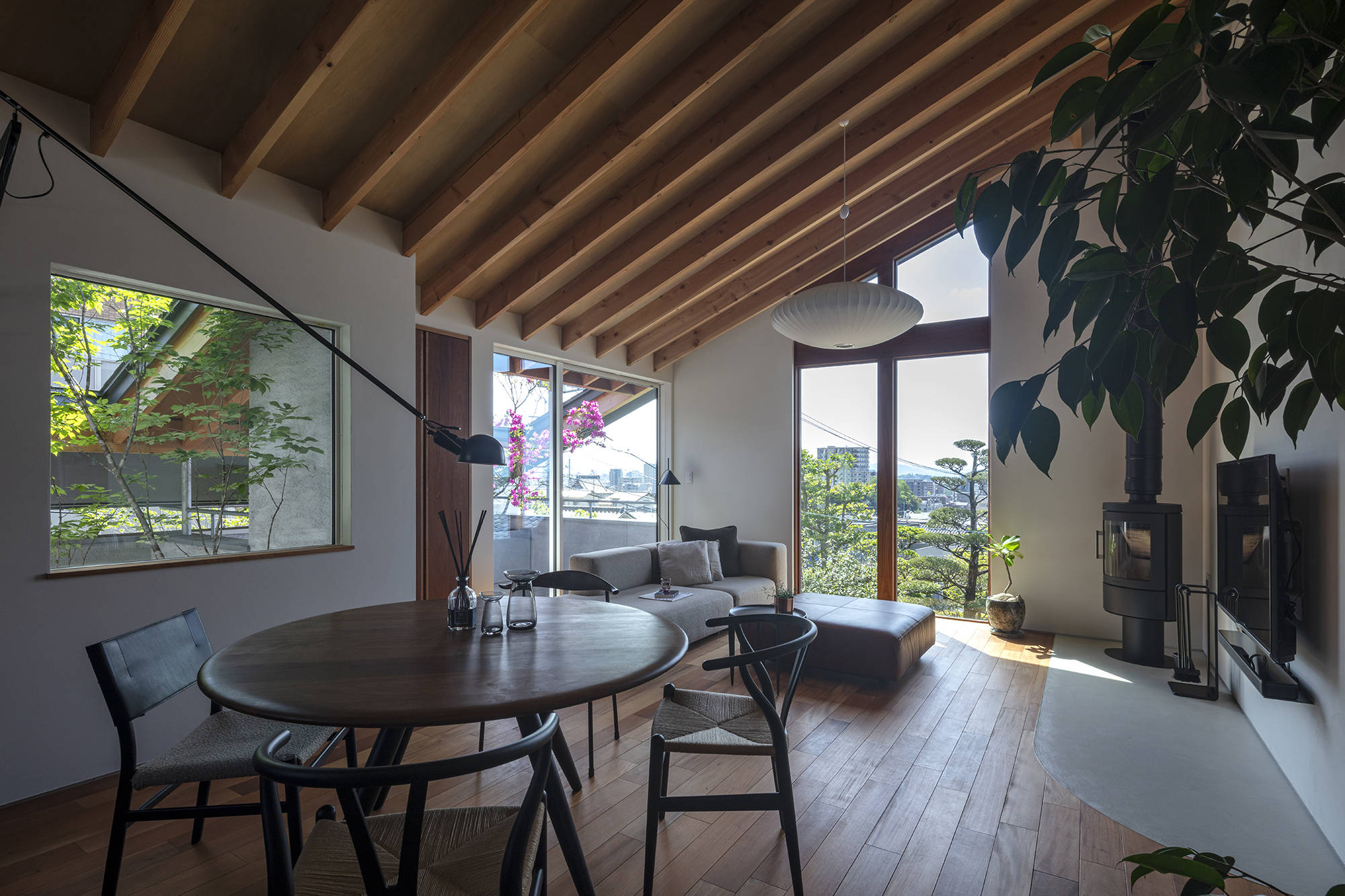 掘り下げて内部をスキップフロアにすることで外観の圧迫感を緩和