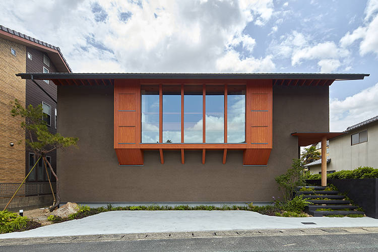 敷地が早島町の「景観形成重点地区」に位置するので、古い街並みと調和するよう、軒を低く押さえた屋根、土壁に設けた軽やかな開口部、外部仕上げに自然素材の多用等、「これまでもずっとこの場所に建っていたのでは?」と思わせる佇まいとなりました。