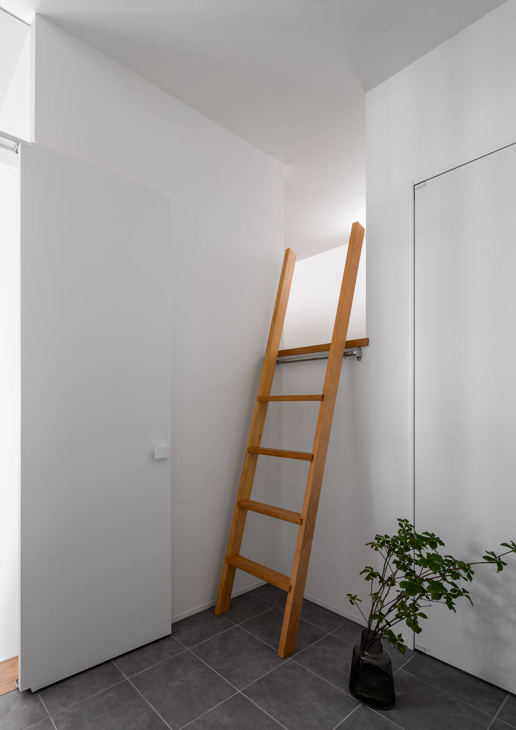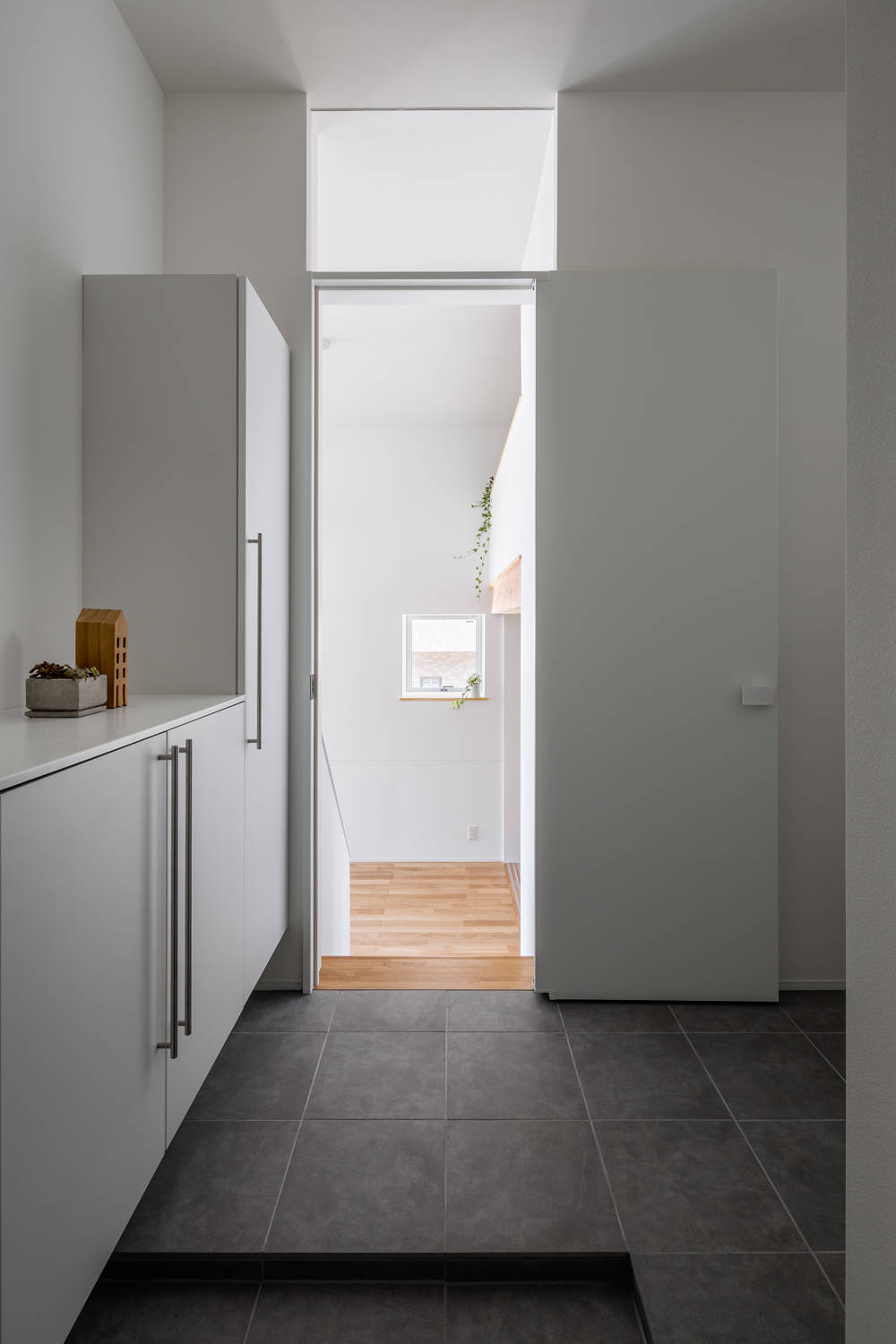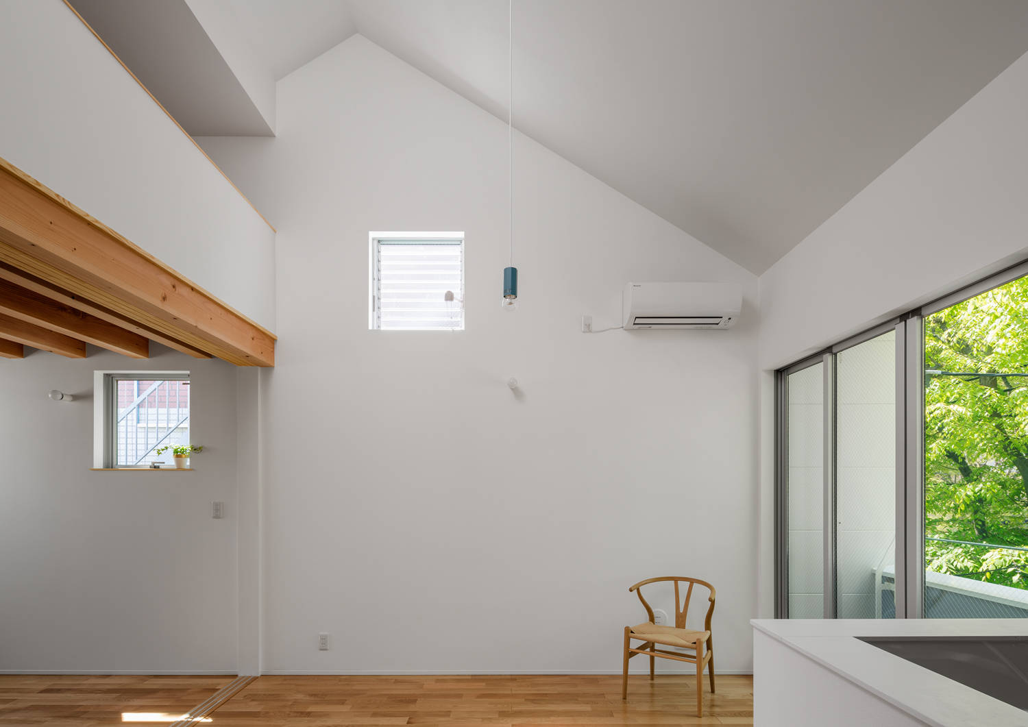 限られた面積の中ではあるが、高さ方向へゆとりを持たせ、また内部からは自然を感じられるように外部との関わりを意識して設計を行った空間は面積以上の広がりを感じさせてくれる。
