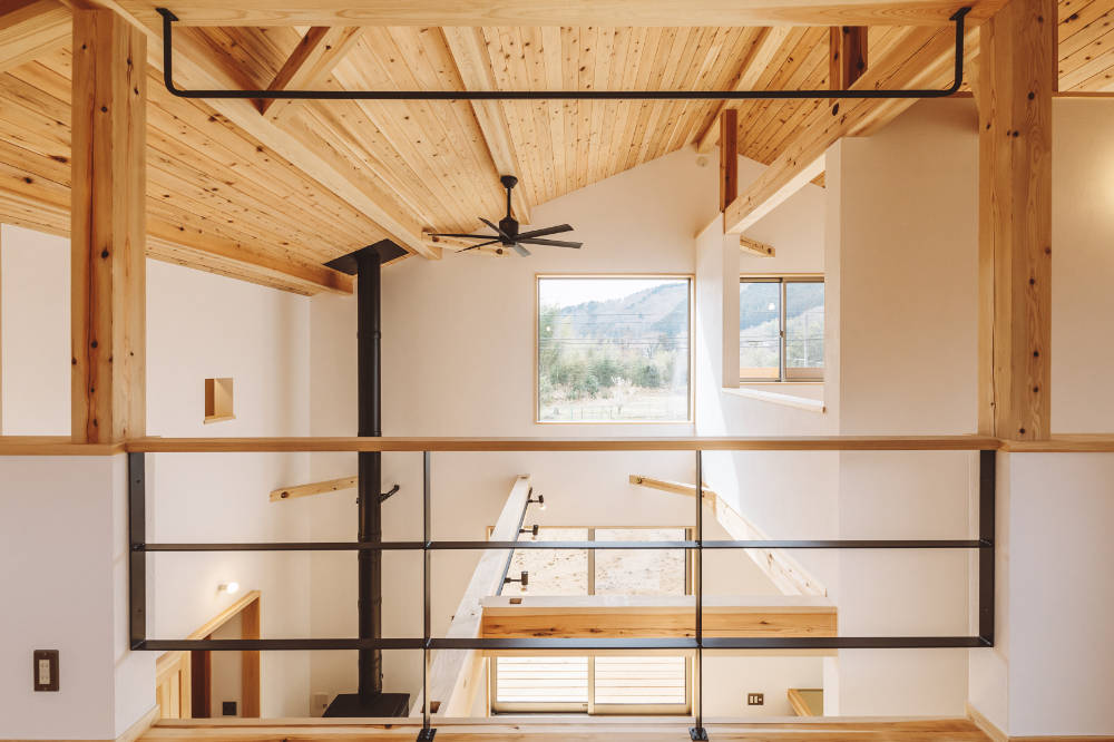 構造材には、地元の材木、天然乾燥の西川材を使い、地産地消の家となりました。
