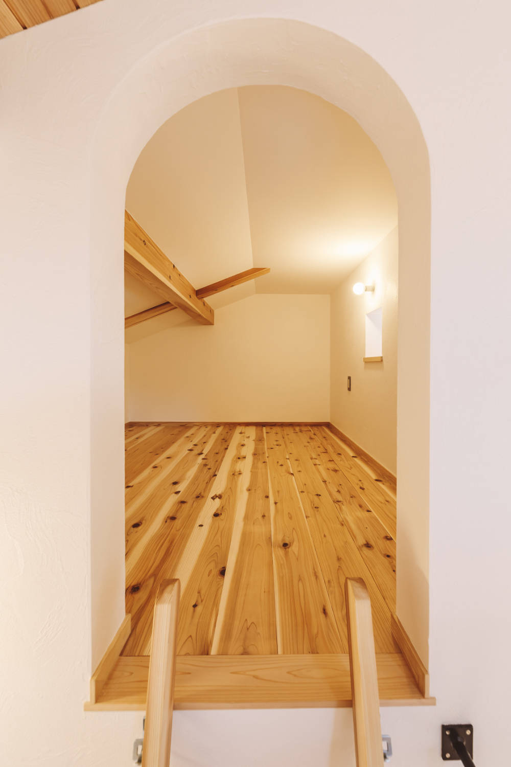 外壁は、高千穂シラスのそとん壁、内部は杉の無垢材と、漆喰塗り、栗の造作キッチンに、米のり、にかわを使って造った建具など自然素材で仕上げ、身体にも優しい造りとなっています。
