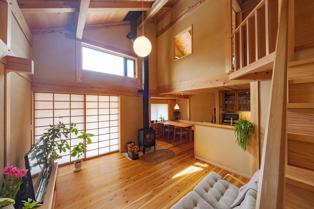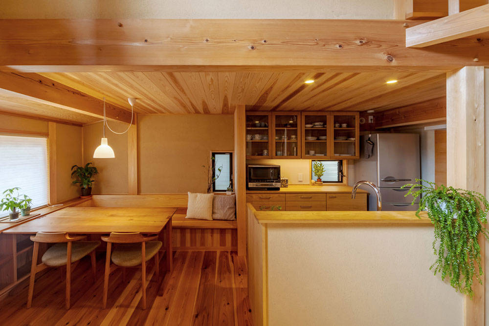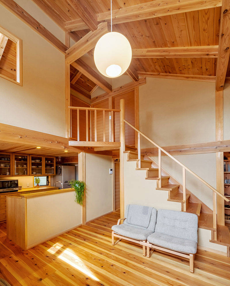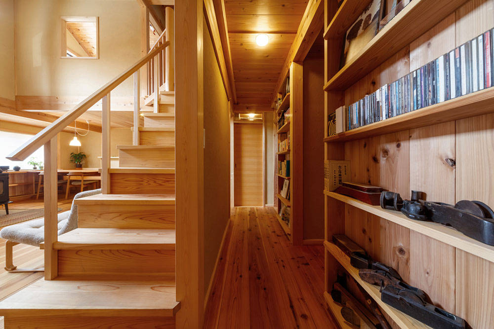 住まい手はご夫婦と二人のお子さんの四人家族。ご主人の袋田琢巳さんは大工さん。『職人がつくる木の家ネット』のメンバーで、日本の木を活かし、職人の手の技を大切にしながら、真摯に家づくりに取り組む仲間の一人です。
