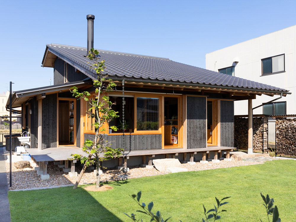 愛知県津島市に建つ、延べ約30坪の木組み土壁の家です。