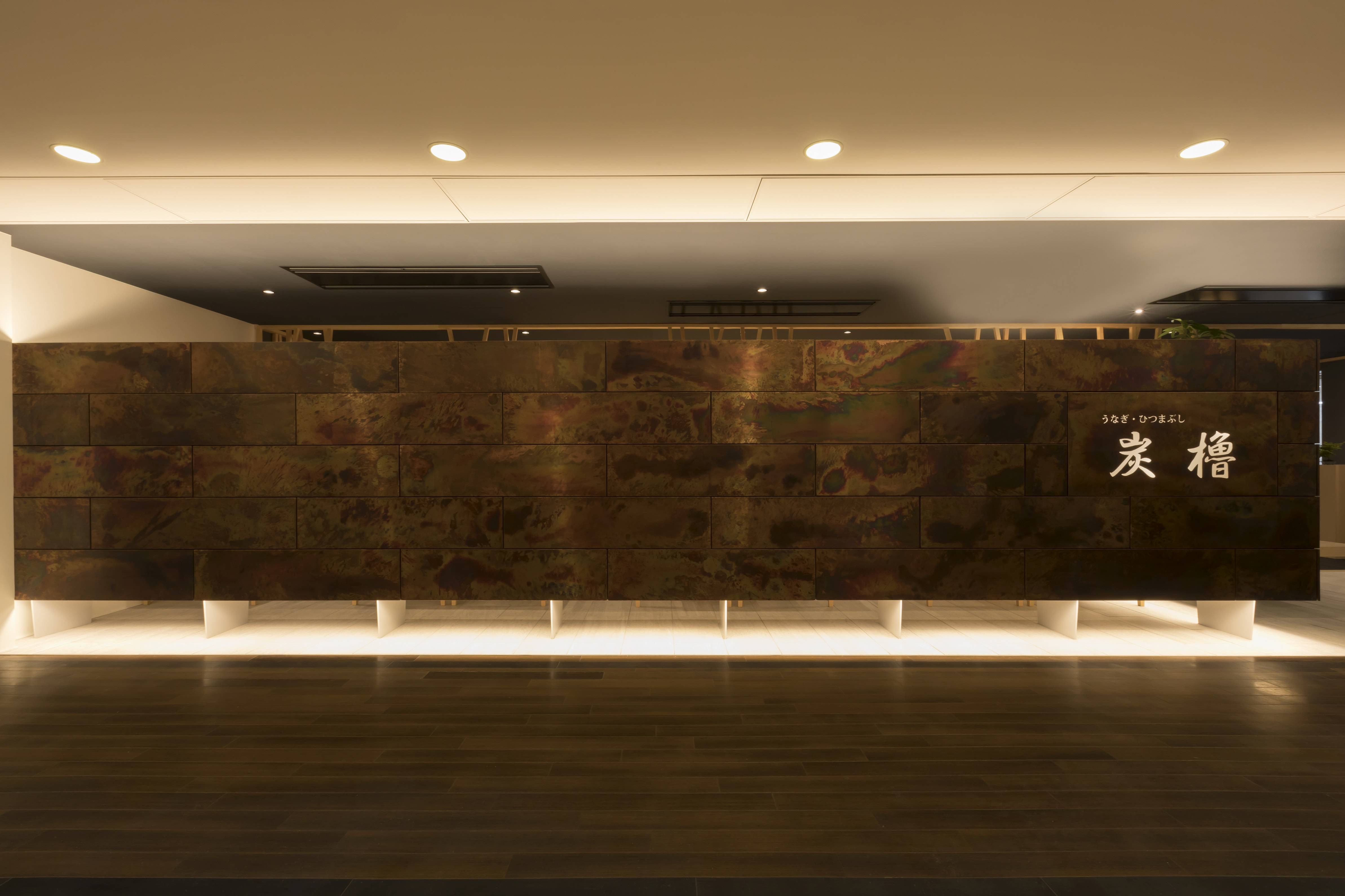 存在感のある銅板が人々を惹きつけ店内に招き入れ、和を感じながらうなぎを楽しんでいただき、様々な言語が飛び交うにぎわいあふれる店舗となるでしょう。