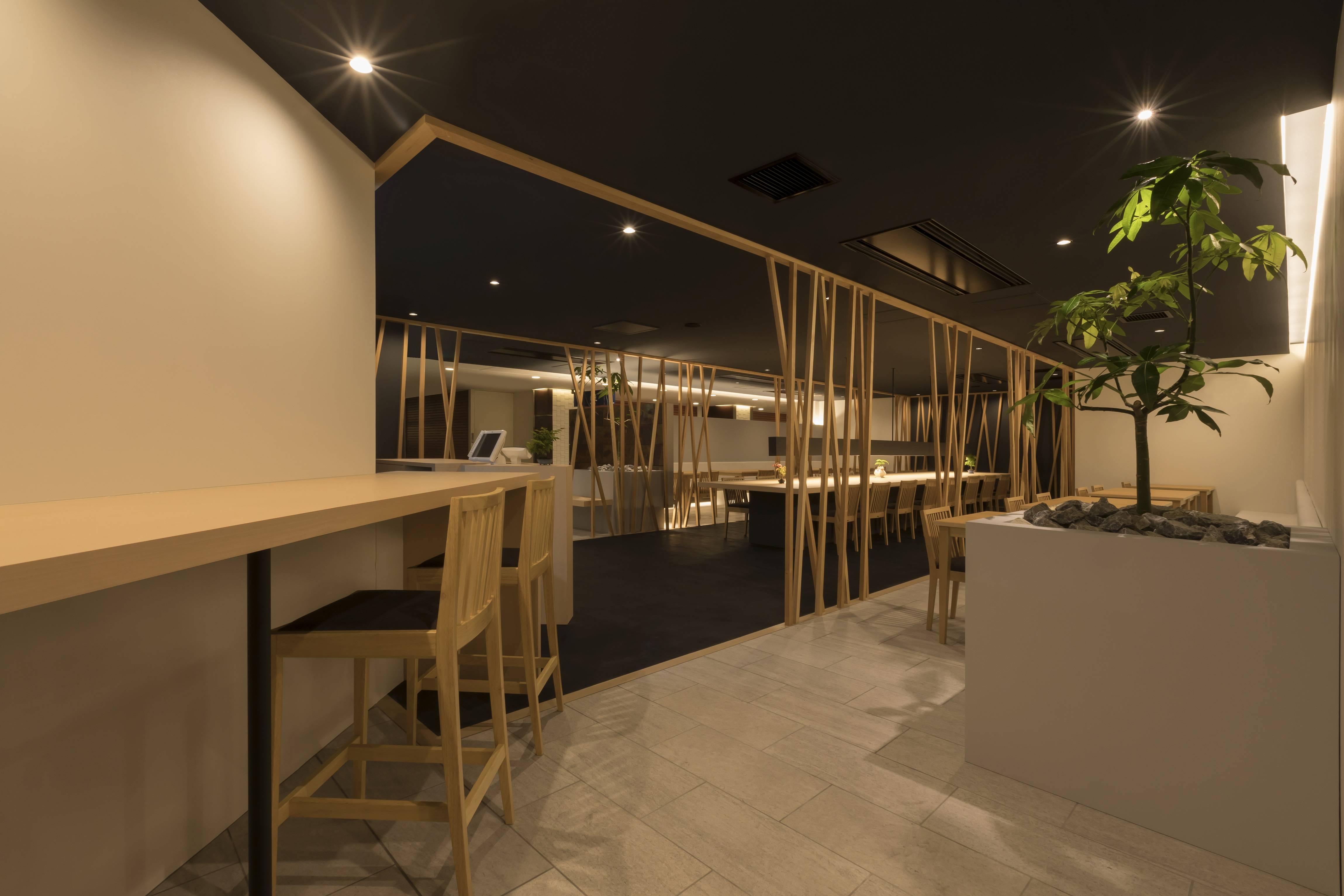 どことなく「和」な色合いや素材で、グレード感に溢れると共にオープンで入りやすい空間の演出を求められました。